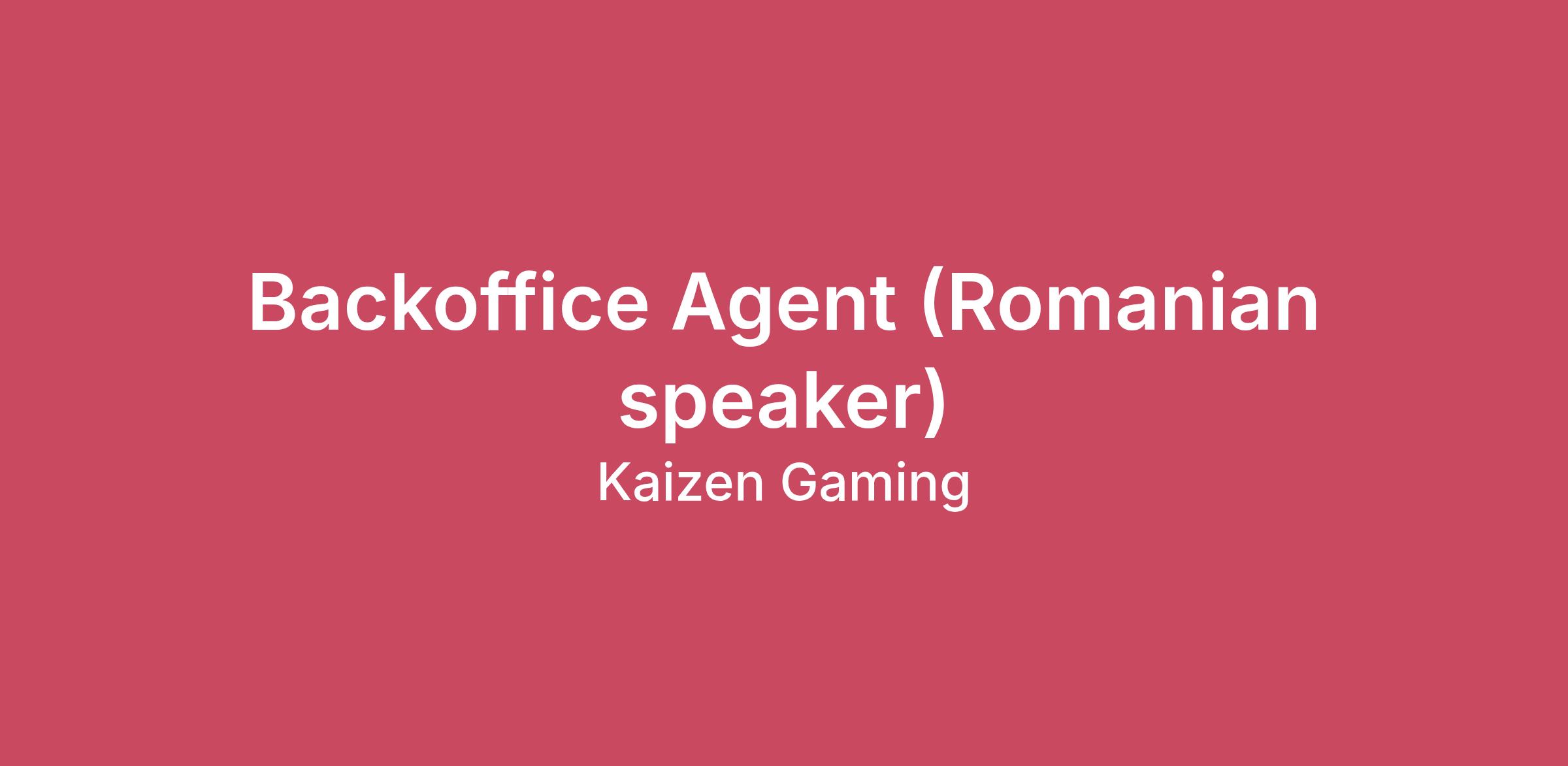 The Backoffice Agent (Romanian speaker) is responsible for supporting back office functions, aiming to provide excellent customer experience.Responsibilities involve handling tasks that are essential for the smooth operation of the business, including providing support to internal functions, tracking ongoing issues and involving the relevant teams to resolve problems.The role also includes handling customer inquiries and cases related to Responsible Gaming. This includes identifying, supporting, and assisting players who may be exhibiting signs of problem gambling or who are requesting help in managing their gaming activities. The agent will work closely with internal departments to ensure that all Responsible Raming guidelines and regulatory requirements are followed, providing players with a safe, supportive, and compliant gaming environment.
