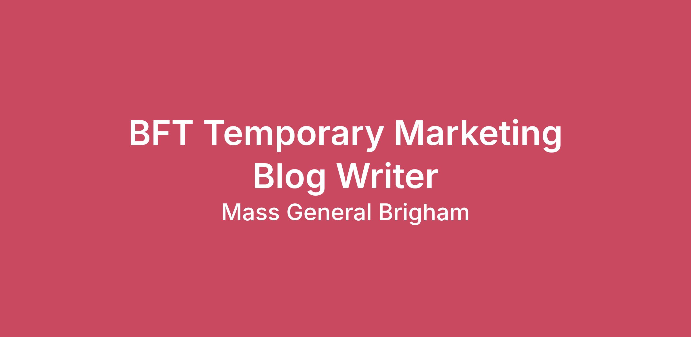 Site: The General Hospital Corporation Mass General Brigham relies on a wide range of professionals, including doctors, nurses, business people, tech experts, researchers, and systems analysts to advance our mission. As a not-for-profit, we support patient care, research, teaching, and community service, striving to provide exceptional care. We believe that high-performing teams drive groundbreaking medical discoveries and invite all applicants to join us and experience what it means to be part of Mass General Brigham. Job SummaryThis is a full-time temporary role, 40 hours / week.We are seeking a skilled and organized Full-Time Marketing Blog Writer to support the development and publication of high-quality blog content over a 6-month period. This role combines strong writing and editing skills with moderate project management responsibilities to ensure a consistentflow of content from concept through publication.The writer will collaborate with marketing leadership and academic subject matter experts to plan, develop, edit, and publish blogs that support institutional marketing goals. The position requires someone who can move projects forward efficiently, coordinate feedback from multiple stakeholders, and leverage modern writing and editing technologies to streamline the contentdevelopment process. QualificationsKey ResponsibilitiesCollaborate with marketing leadership to plan and maintain a blog content calendar alignedwith strategic priorities.Research, write, and edit blog content that supports marketing and thought leadershipobjectives.Leverage SEO planning tools to for keyword research, competitive assessment, and databaseddecision making to optimize organic search (we will train as needed).Work with academic leaders and subject matter experts to develop accurate, engagingcontent.Use writing and editing technologies to improve efficiency while maintaining quality and voiceconsistency.Manage the blog development process from initial concept through final approval.Coordinate feedback and revisions with internal stakeholders.Ensure content meets brand, editorial, and quality standards.Partner with the website team to prepare and publish blog content.Track project timelines to ensure blogs move through review and approval stages efficiently.QualificationsStrong writing and editing skills with the ability to produce clear, engaging, and accuratecontent.Experience writing blog content, marketing content, or editorial content.Ability to manage multiple projects and deadlines in a collaborative environment.Comfort working with subject matter experts and translating complex topics into accessiblecontent.Strong organizational and communication skills.Familiarity with content management systems and digital publishing workflows is preferred.Experience using AI-assisted writing or editing tools to support content production is a plus.Preferred Experience (not required)Background in higher education, healthcare, or professional education content.Experience managing editorial calendars or content pipelines.Understanding of SEO principles for blog content.Work EnvironmentThis is a full-time contract role expected to run for approximately 6 months with the option toextend at 40 hours per week. The role works closely with the marketing team and internal subjectmatter experts and requires strong coordination across multiple stakeholders. This role is remote,but if located in the Boston area, you are welcome to work on campus. Additional Job Details (if applicable)Physical RequirementsStanding Occasionally (3-33%)Walking Occasionally (3-33%)Sitting Constantly (67-100%)Lifting Occasionally (3-33%) 20lbs - 35lbsCarrying Occasionally (3-33%) 20lbs - 35lbsPushing Rarely (Less than 2%)Pulling Rarely (Less than 2%)Climbing Rarely (Less than 2%)Balancing Occasionally (3-33%)Stooping Occasionally (3-33%)Kneeling Rarely (Less than 2%)Crouching Rarely (Less than 2%)Crawling Rarely (Less than 2%)Reaching Occasionally (3-33%)Gross Manipulation (Handling) Constantly (67-100%)Fine Manipulation (Fingering) Frequently (34-66%)Feeling Constantly (67-100%)Foot Use Rarely (Less than 2%)Vision - Far Constantly (67-100%)Vision - Near Constantly (67-100%)Talking Constantly (67-100%)Hearing Constantly (67-100%) Remote TypeRemote Work Location399 Revolution Drive Scheduled Weekly Hours0 Employee TypeTemporary Work ShiftDay (United States of America) EEO Statement:1200 The General Hospital Corporation is an Equal Opportunity Employer. All qualified applicants will receive consideration for employment without regard to race, color, religious creed, national origin, sex, age, gender identity, disability, sexual orientation, military service, genetic information, and/or other status protected under law. We will ensure that all individuals with a disability are provided a reasonable accommodation to participate in the job application or interview process, to perform essential job functions, and to receive other benefits and privileges of employment. To ensure reasonable accommodation for individuals protected by Section 503 of the Rehabilitation Act of 1973, the Vietnam Veteran’s Readjustment Act of 1974, and Title I of the Americans with Disabilities Act of 1990, applicants who require accommodation in the job application process may contact Human Resources at (857)-282-7642. Mass General Brigham Competency FrameworkAt Mass General Brigham, our competency framework defines what effective leadership “looks like” by specifying which behaviors are most critical for successful performance at each job level. The framework is comprised of ten competencies (half People-Focused, half Performance-Focused) and are defined by observable and measurable skills and behaviors that contribute to workplace effectiveness and career success. These competencies are used to evaluate performance, make hiring decisions, identify development needs, mobilize employees across our system, and establish a strong talent pipeline.
