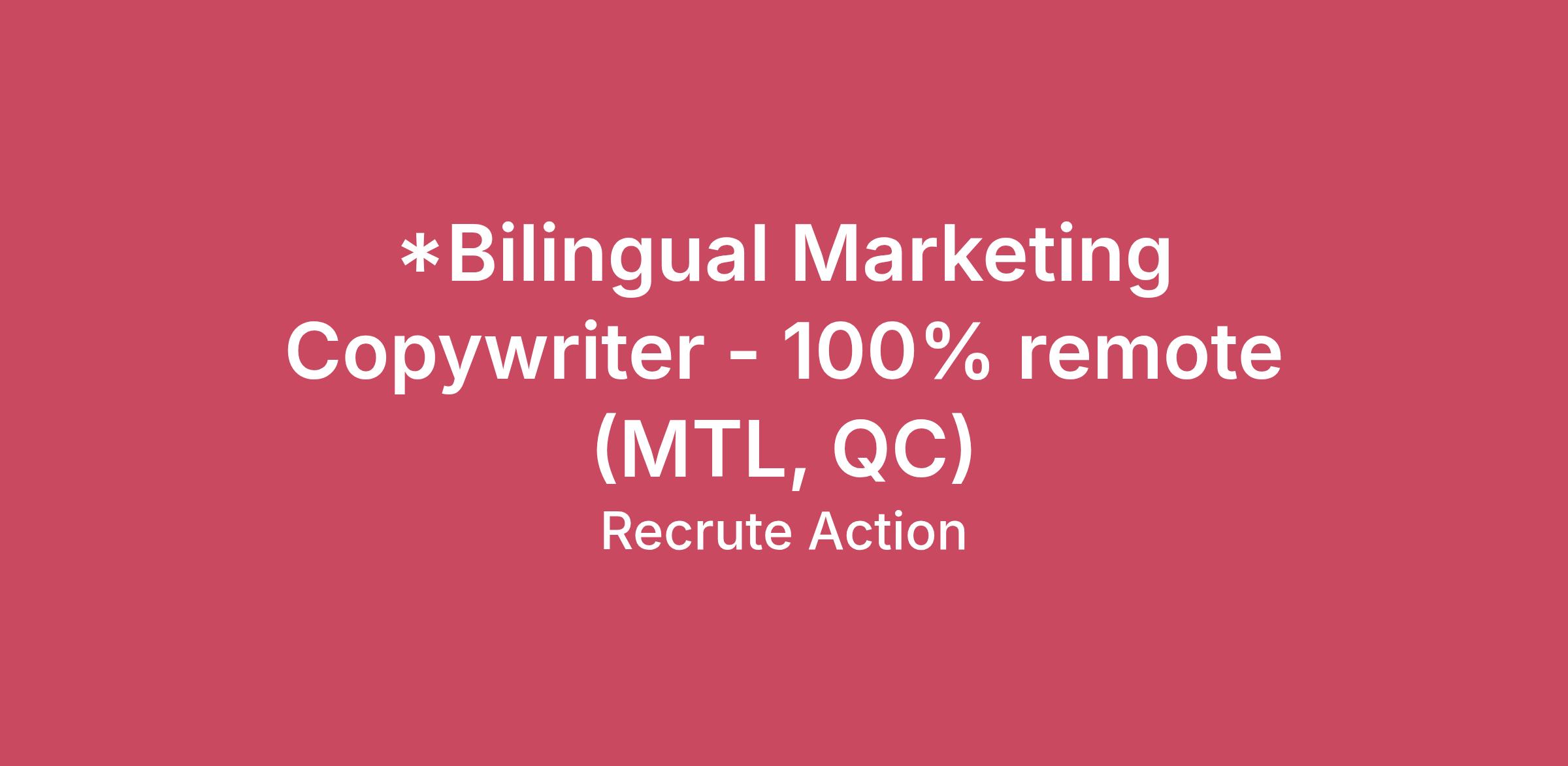 *Bilingual Marketing Copywriter - 100% remote (MTL, QC)