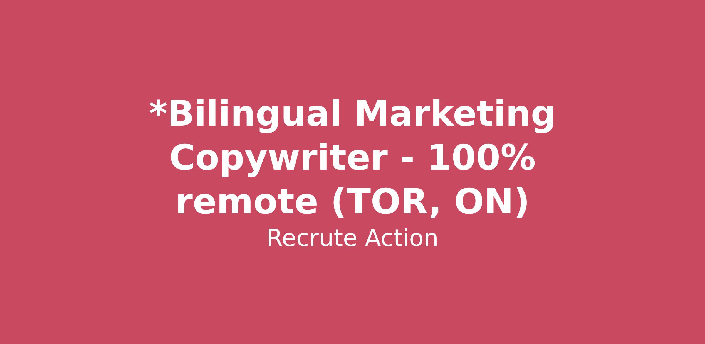 *Bilingual Marketing Copywriter - 100% remote (TOR, ON)