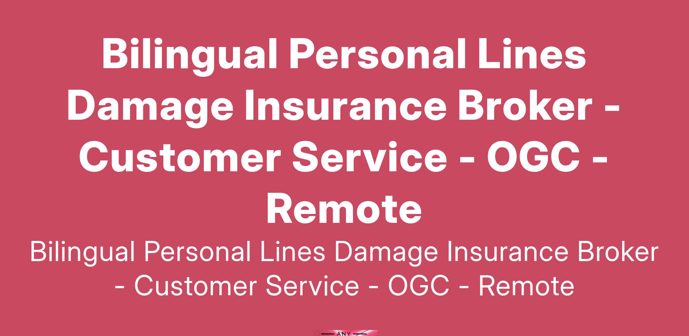 Bilingual Personal Lines Damage Insurance Broker - Customer Service