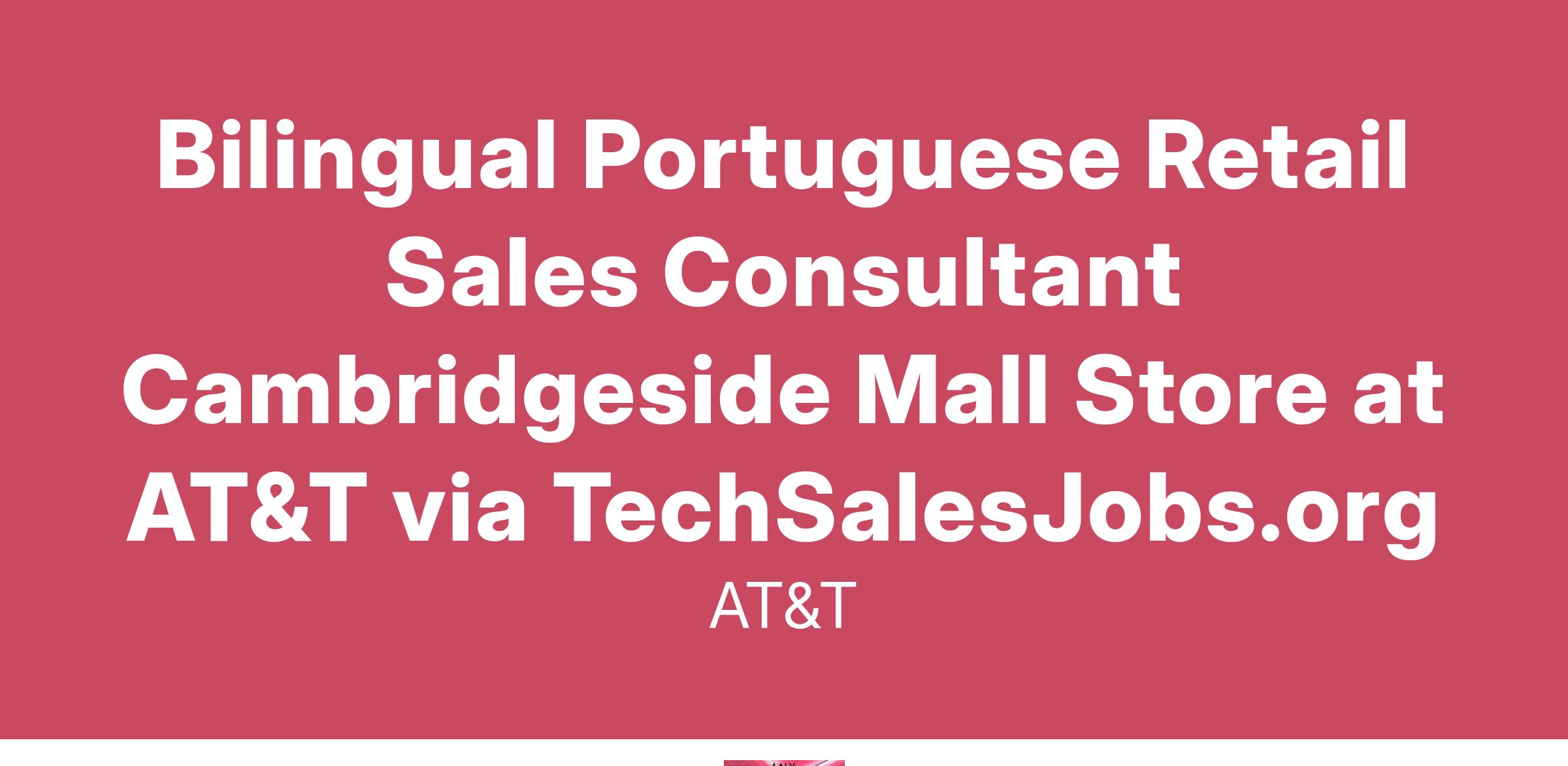 Job Description:We’re offering a specific $3,000 Sign On Bonus ($500 after 90 days, $500 after 6 months, and $2000 at 1 year of service) for external candidates, including this location. (Internal employees are not eligible).Do you speak Portuguese and English? If you do, we’re looking for you! Our Retail Careers come with awesome perks and may include additional starting pay if you are bilingual!It’s time to take your sales career to the next level. Every day you’ll be at the center of it all. Your goal? Create meaningful connections with every customer, with your personalized sales expertise. Meeting sales targets and earning your commission happens with the power of AT&T’s full suite of products at your fingertips – the latest devices and personalized services that bring friends, families and communities closer together.Let’s talk about what to expect:On the sales floor, you’ll use a consultative sales approach guiding customers through their options, this is where your drive and passion for helping people will really shine.You’ll be a part of the community through events, filling online orders and making outbound calls to existing and potential customers.You’ll work a schedule between 9am-9pm, including weekends, so you can be there when our customers need us. Monthly seniority-based schedules are available 2 weeks in advance.This is a fast-paced environment, being flexible and open to change will help you stay current with evolving tech and all the ways we work to meet customer’s needs.Prior retail or customer-facing sales experience is a plus. No sales experience? We’ll provide you with the tools, training and coaching needed to help you meet and exceed your goals!Our Retail Sales Consultants earn between $18.21 - $20.97 per hour plus $13,700+ in commissions if all sales goals are met. With our uncapped commission opportunities, overachieving those goals earn top sellers $62,460 per year. Individual starting salary within this range may depend on geography, experience, expertise, and education/training. Joining our team comes with amazing perks and benefits:Medical/Dental/Vision coverage401(k) planTuition reimbursement programPaid Time off and holidays (With some exceptions bargained employees qualify for one week of PTO after 6 months of service and 2 weeks after the first year). At least 6 company designated holidays and additional PTO (based on bargaining group to which you are hired).Sick leavePaid Parental LeaveAdoption ReimbursementDisability Benefits (short term and long term)Life and Accidental Death InsuranceSupplemental benefit programs: critical illness, accident hospital indemnity/group legalEmployee Assistance Programs (EAP)Employee discounts up to 50% off on eligible AT&T mobility plans and accessories, AT&T internet (and fiber where available) and AT&T phoneIf you are considering jobs like Wireless Sales Consultant, Retail Associate, Retail Sales Associate, or Retail Team Member, this career move would be a great fit!At AT&T, the safety of our employees and customers remains our top priority. We are committed to following all protective and safe-distancing guidelines required by local & state authorities in response to COVID-19.Ready to join our sales team? Apply today.#ConnectingOurCommunitiesWeekly Hours:40Time Type:RegularLocation:USA:MA:Cambridge:100 Cambridgeside Pl:RET/RETWith our amazing wage opportunities, our average starting earnings per week begin at