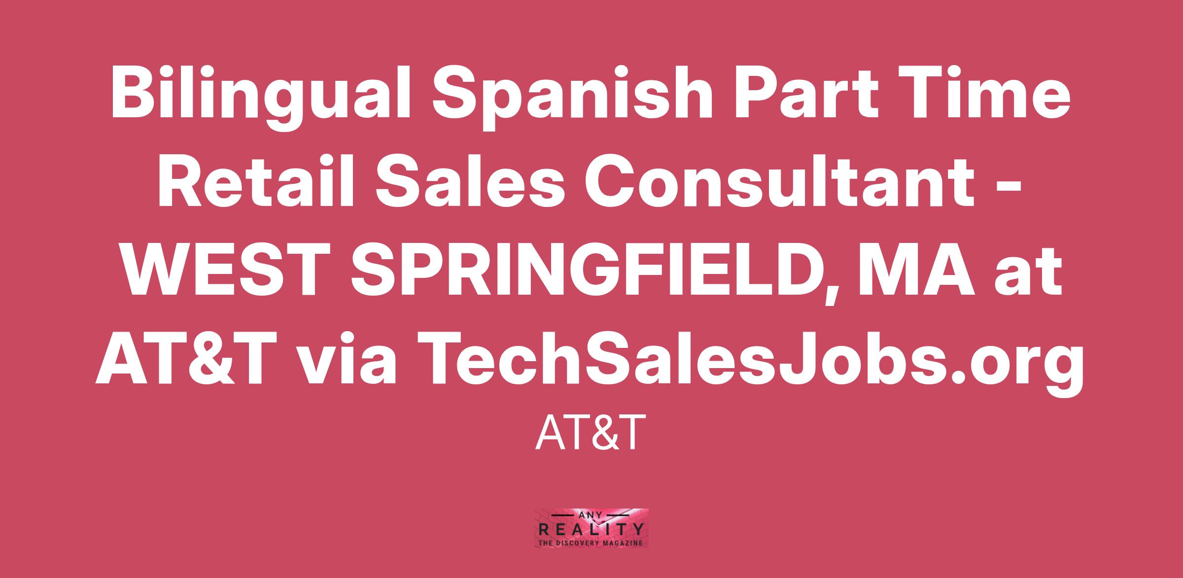 JobTitle : Bilingual Spanish Part Time Retail Sales Consultant - WEST SPRINGFIELD, MA (WEST SPRINGFIELD) JOBKEYJOBCODE : 16000025 Wage Scale/Schedule/ Class/Level : Y6 Time on Assignment (TOA) : Residency : Time in Title (TNT) : Job Family : CS Union Affiliation : Mobility Orange (Districts 1, 2-13, 4, 7, 9) Region : MBLT GENERAL DUTIES :The functions listed below are representative of duties performed by this job title. Duties generally include but are not limited to the following: