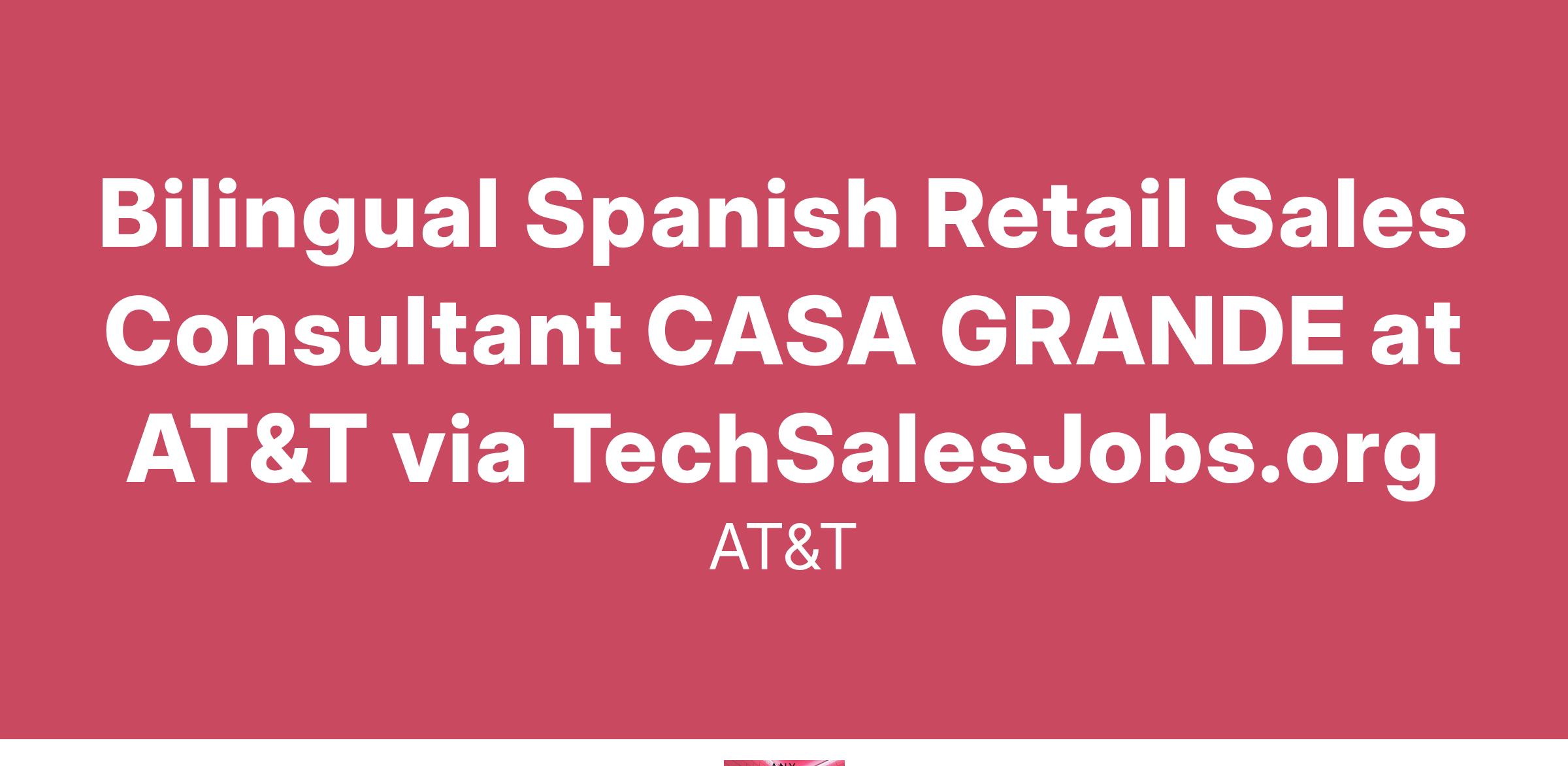 Job Description:Do you speak Spanish and English? If you do, we’re looking for you! Our Retail Careers come with awesome perks and may include additional starting pay if you are bilingual.It’s time to take your sales career to the next level. Every day you’ll be at the center of it all. Your goal? Create meaningful connections with every customer, with your personalized sales expertise. Meeting sales targets and earning your commission happens with the power of AT&T’s full suite of products at your fingertips – the latest devices and personalized services that bring friends, families and communities closer together.Let’s talk about what to expect:On the sales floor, you’ll use a consultative sales approach guiding customers through their options, this is where your drive and passion for helping people will really shine.You’ll be a part of the community through events, filling online orders and making outbound calls to existing and potential customers.You’ll work a schedule between 9am-9pm, including weekends, so you can be there when our customers need us. Monthly seniority-based schedules are available 2 weeks in advance.This is a fast-paced environment, being flexible and open to change will help you stay current with evolving tech and all the ways we work to meet customer’s needs.Prior retail or customer-facing sales experience is a plus. No sales experience? We’ll provide you with the tools, training and coaching needed to help you meet and exceed your goals!Our Retail Sales Consultant’s earn between $16.41 - $20.04 per hour plus $13,700+ in commissions if all sales goals are met. With our uncapped commission opportunities, overachieving those goals earn top sellers $62,460 per year.