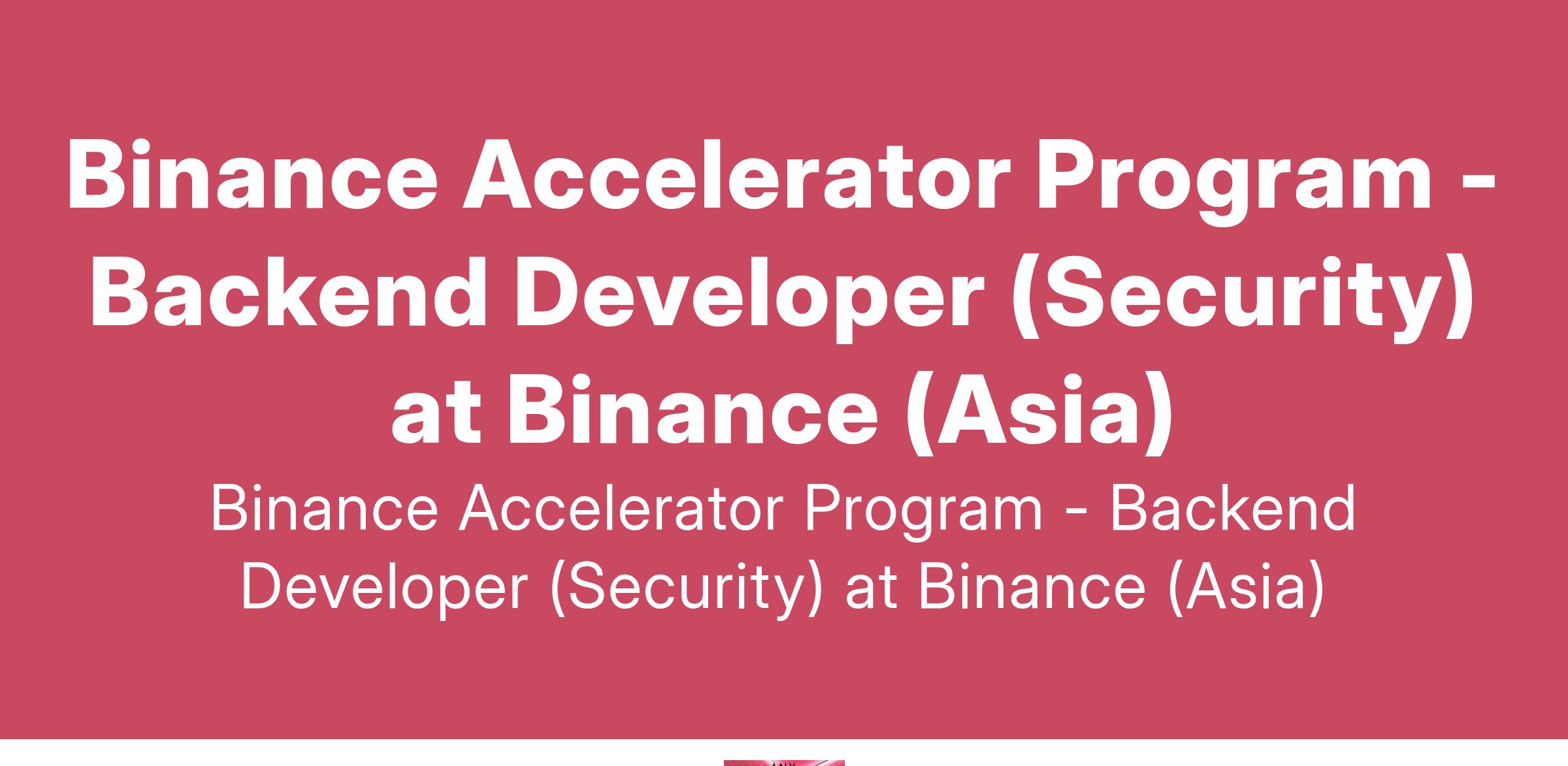 Binance Accelerator Program - Backend Developer (Security) at Binance (Asia)