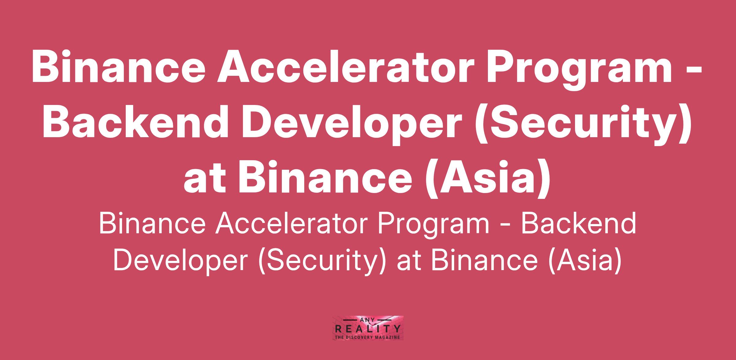 Binance Accelerator Program - Backend Developer (Security) at Binance (Asia)