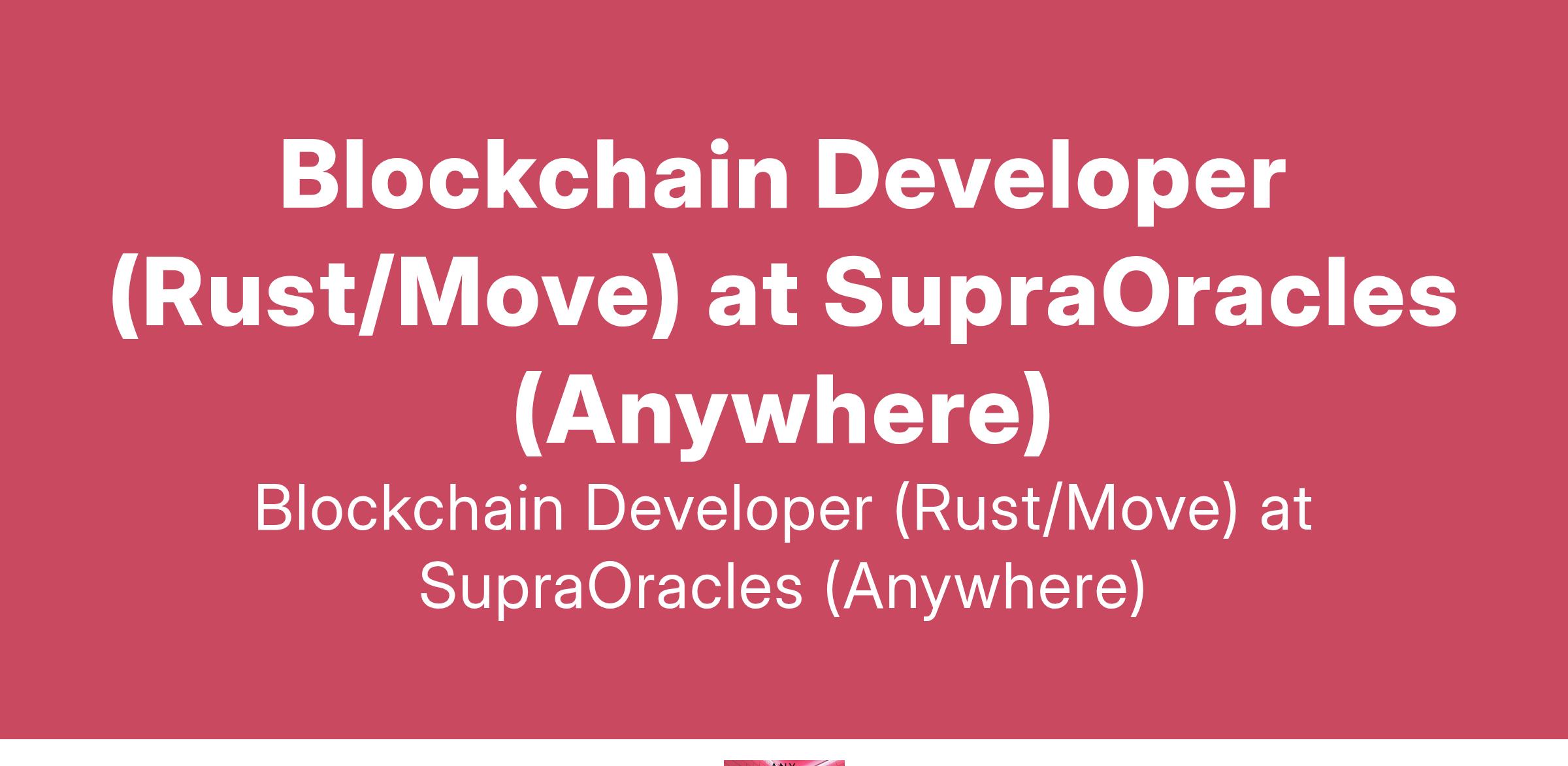 Blockchain Developer (Rust/Move) at SupraOracles (Anywhere)