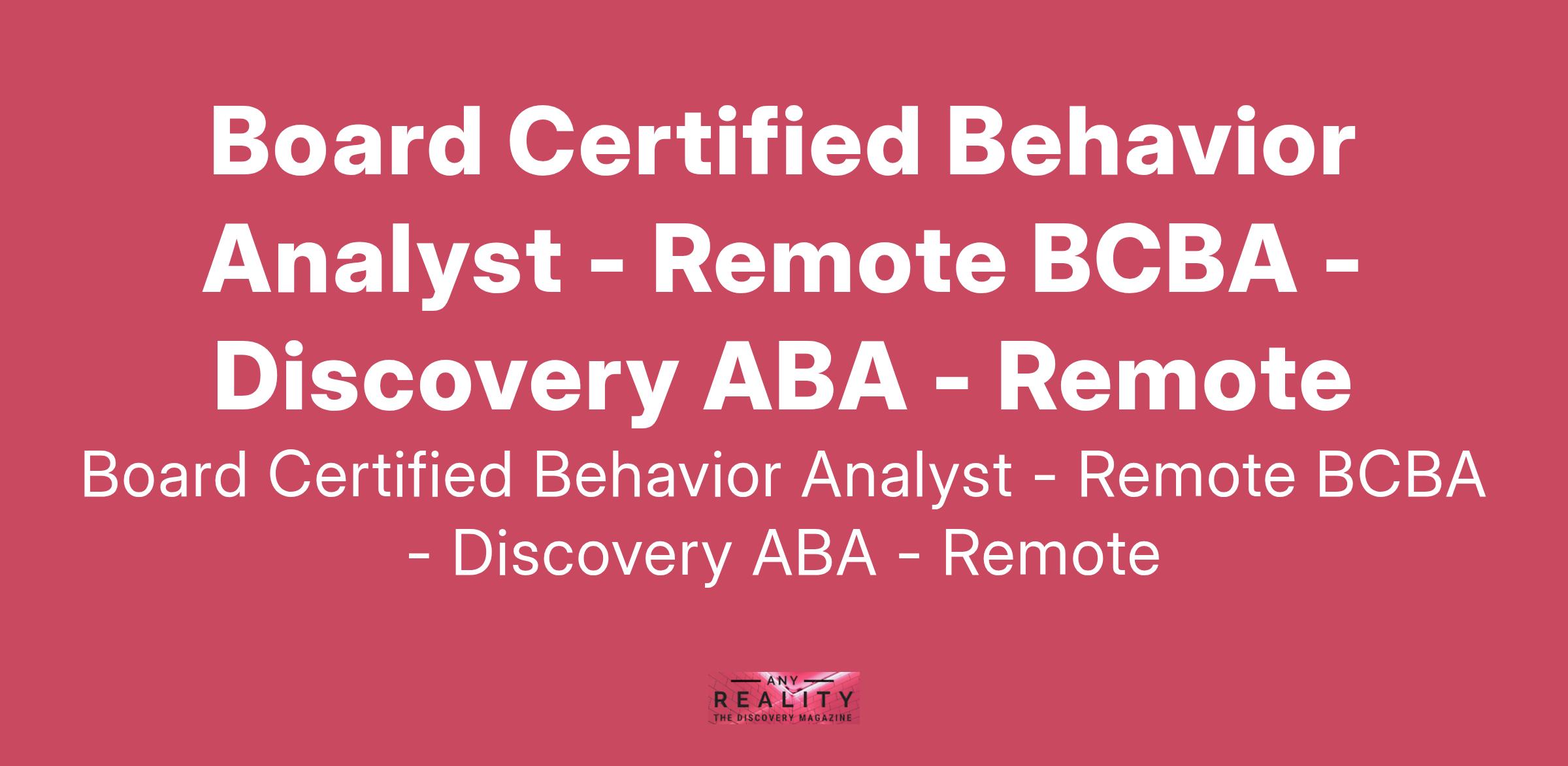 Board Certified Behavior Analyst - Remote BCBA - Discovery ABA - Remote