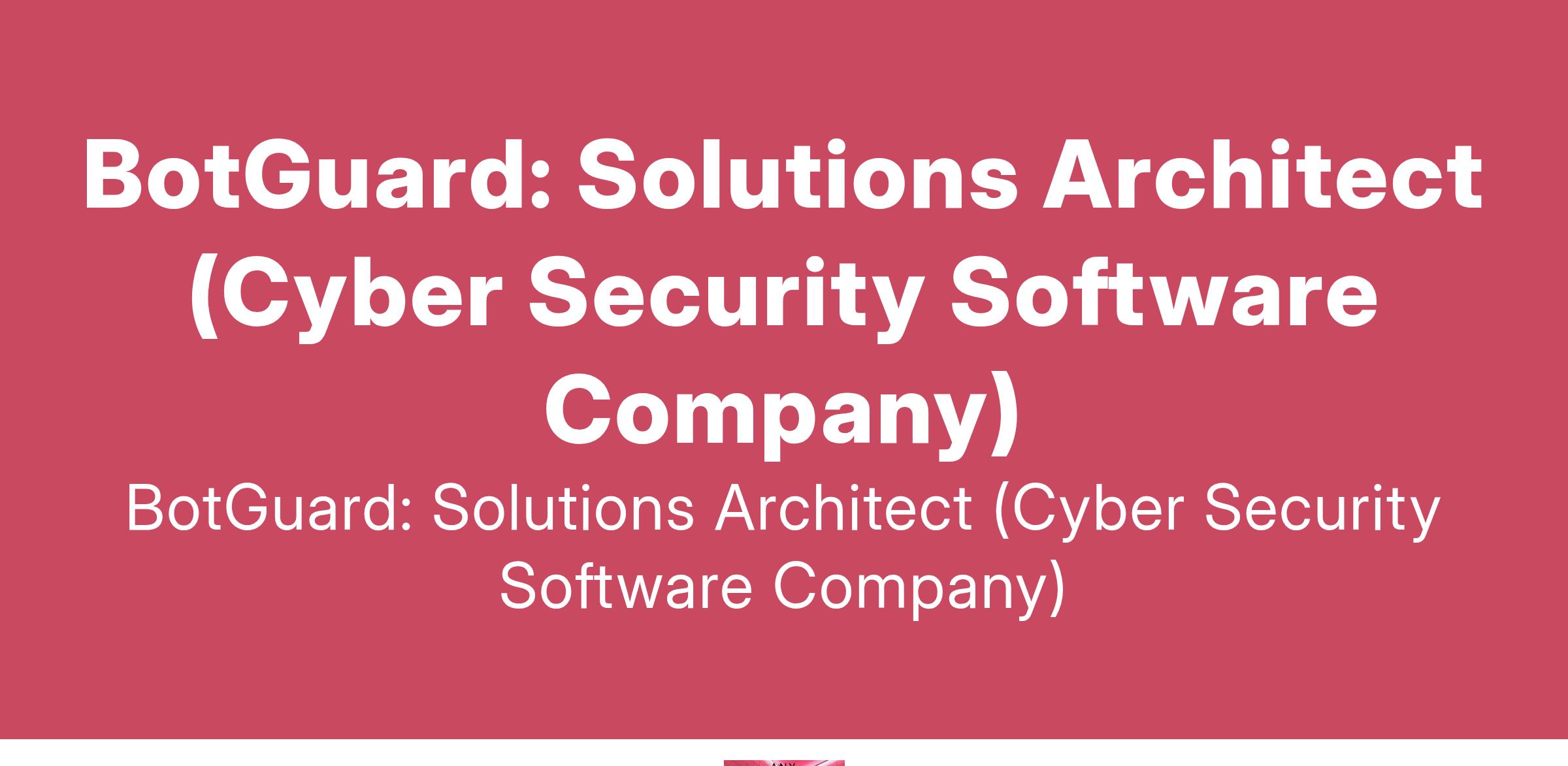 To apply: https://weworkremotely.com/remote-jobs/botguard-solutions-architect-cyber-security-software-company