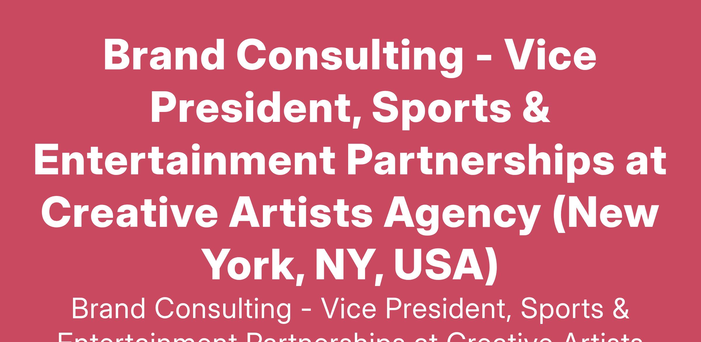 Brand Consulting - Vice President, Sports & Entertainment Partnerships at Creative Artists Agency (New York, NY, USA)