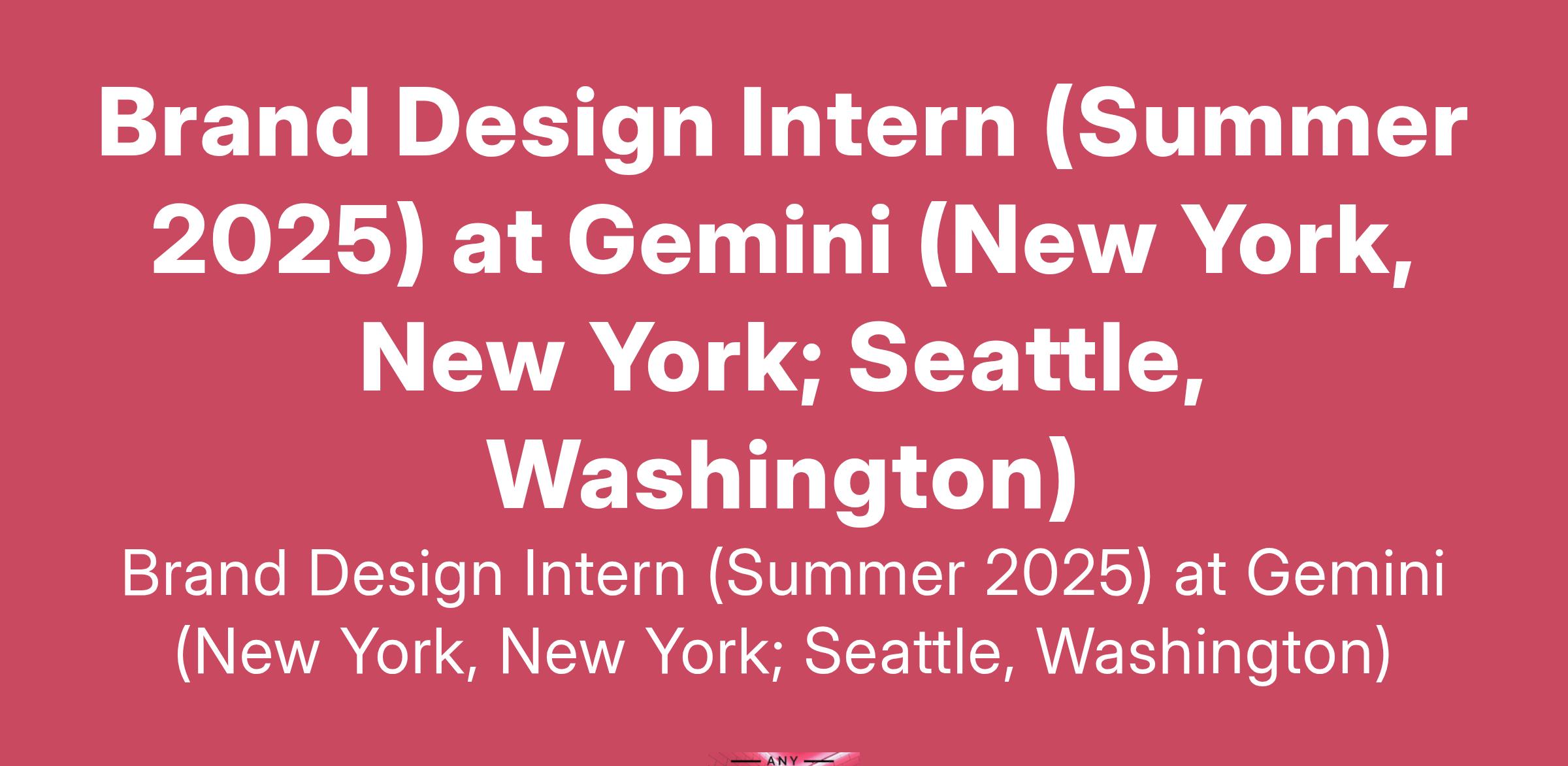Brand Design Intern (Summer 2025) at Gemini (New York, New York; Seattle, Washington)