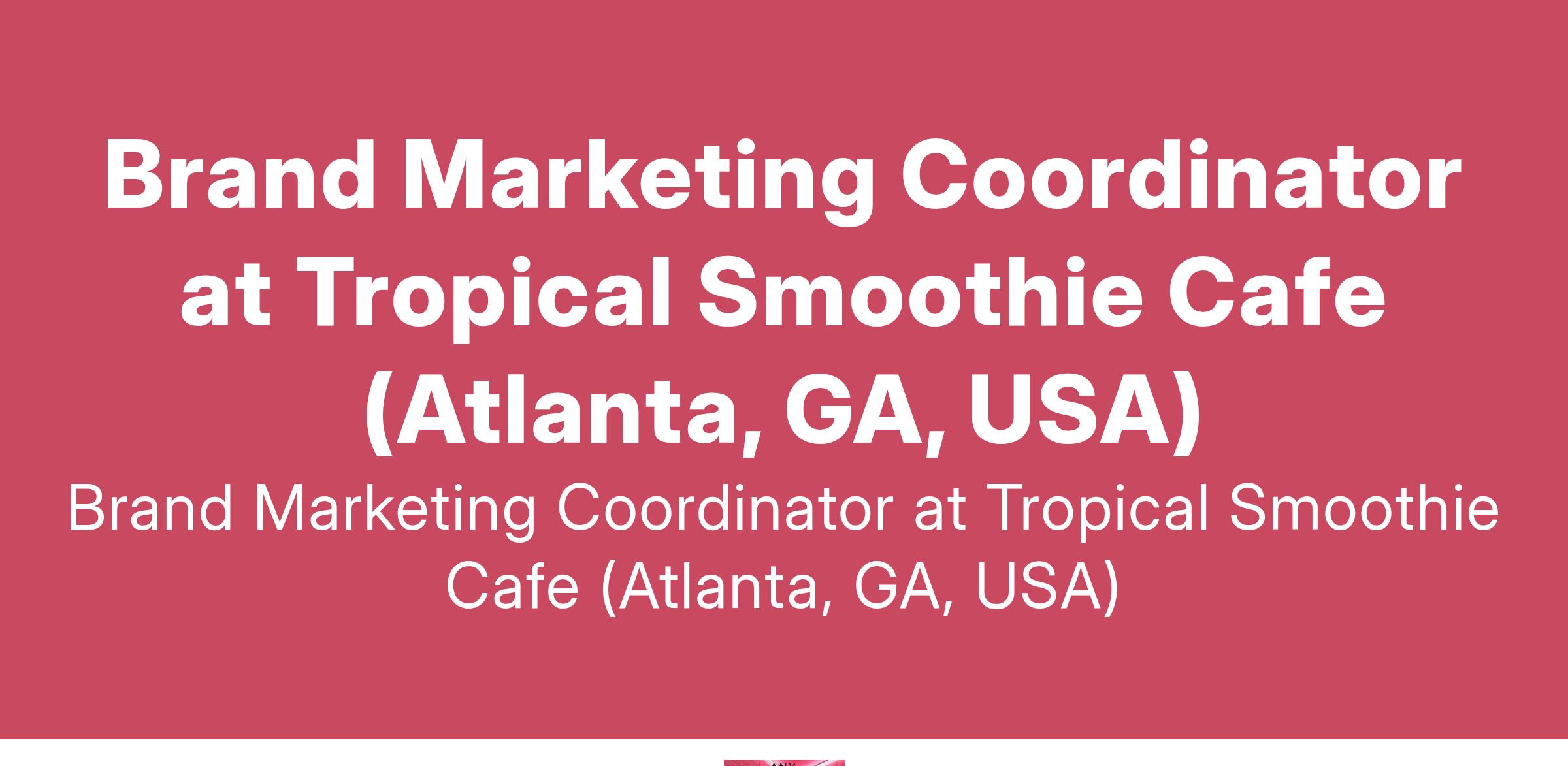 Brand Marketing Coordinator at Tropical Smoothie Cafe (Atlanta, GA, USA)