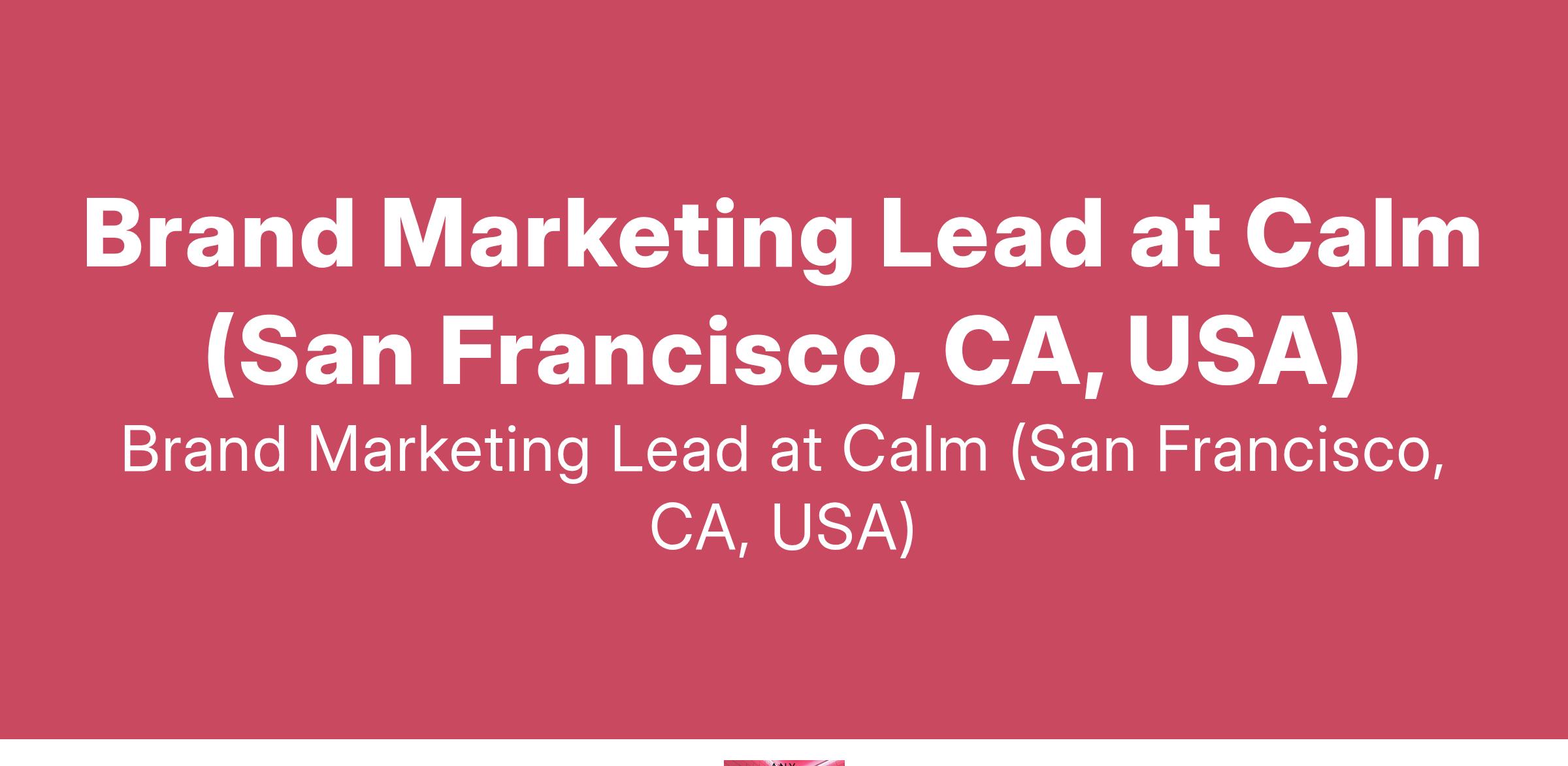 Brand Marketing Lead at Calm (San Francisco, CA, USA)