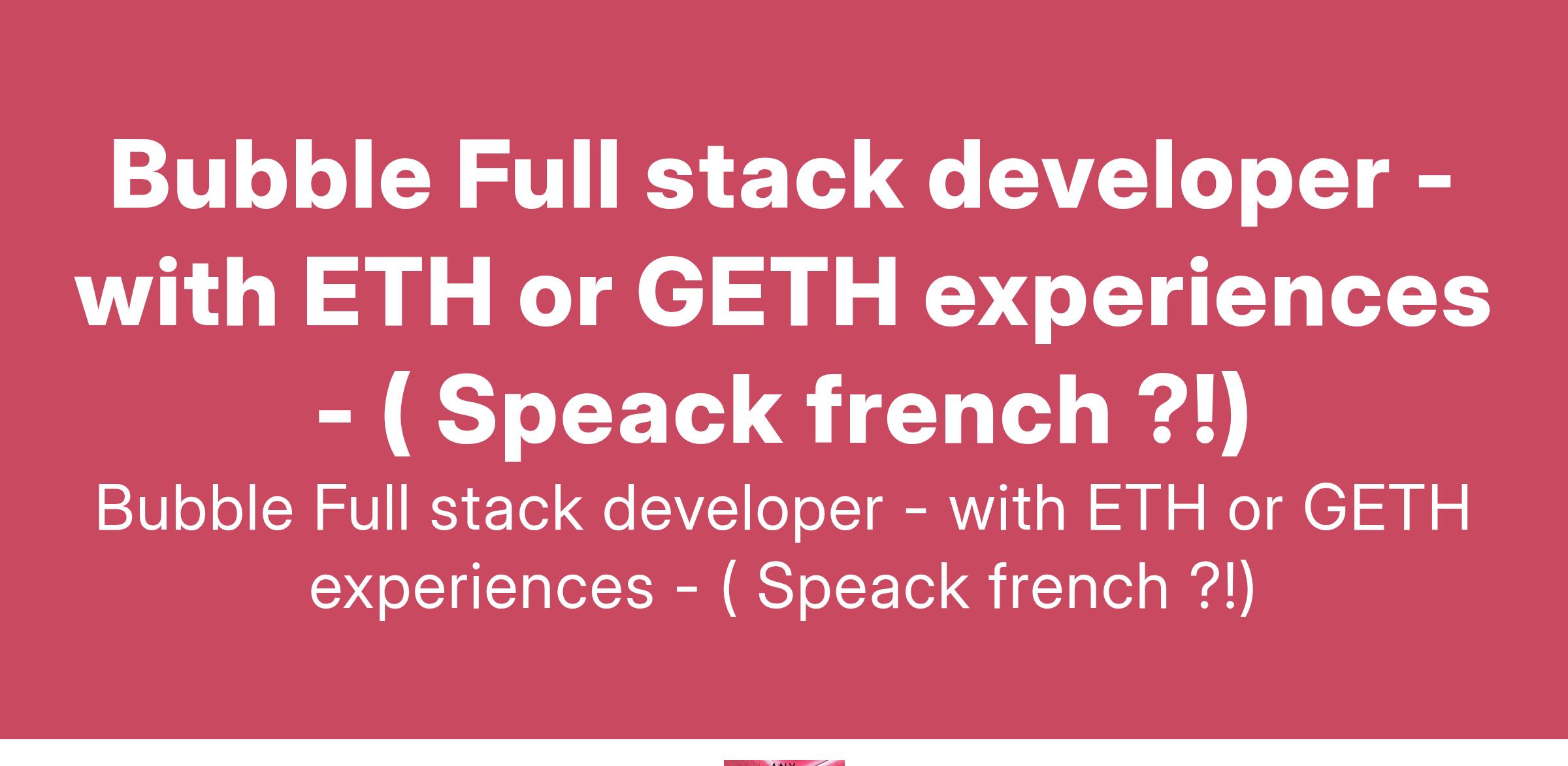 Bubble Full stack developer - with ETH or GETH experiences - ( Speack french ?!)