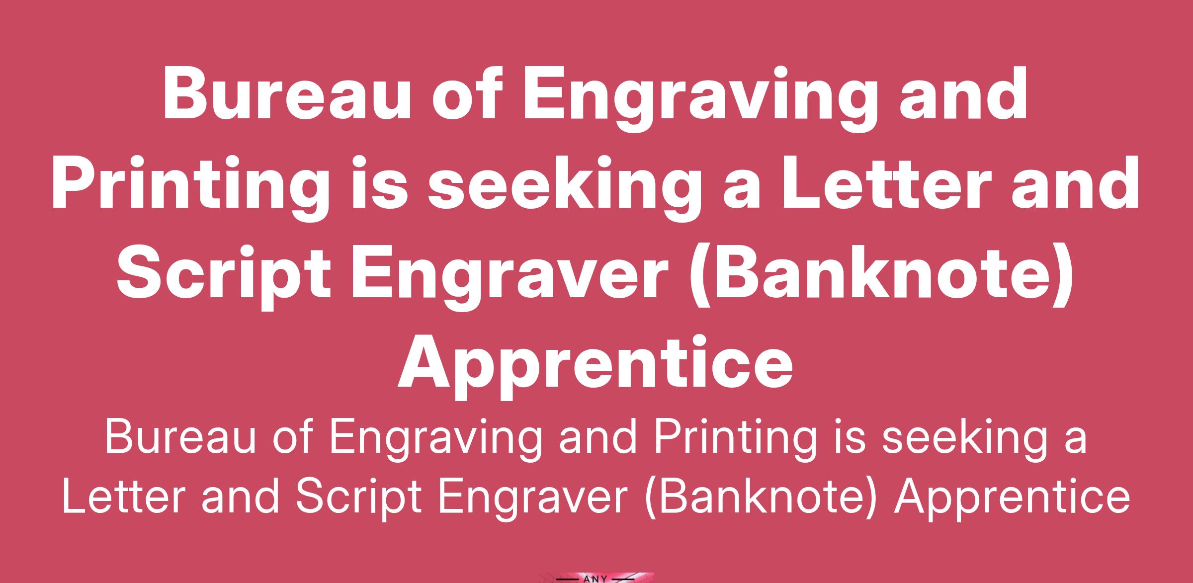 Bureau of Engraving and Printing is seeking a Letter and Script Engraver (Banknote) Apprentice