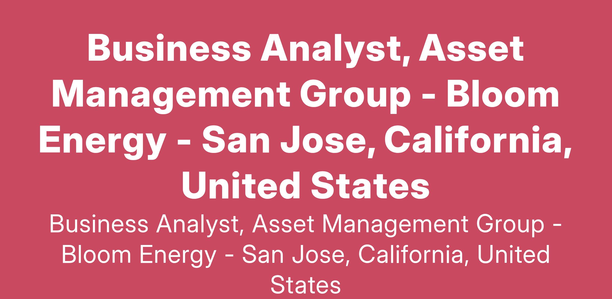 Bloom Energy, a solid oxide fuel cell company, is looking for a Business Analyst, Asset Management Group to join its world class team. This individual should be a dynamic professional who is looking for a rewarding future in one of today’s most exciting technologies. The position is responsible for the operation of a fleet of fuel cells owned by Bloom and its partners which produces electricity for host-off takers. This analyst position will require work with peers in, finance/accounting, sales, and field/customer services in a dynamic start-up environment. The successful candidate will possess flexibility, analytical skills, and the ability to deal with occasional periods of heavy workload.