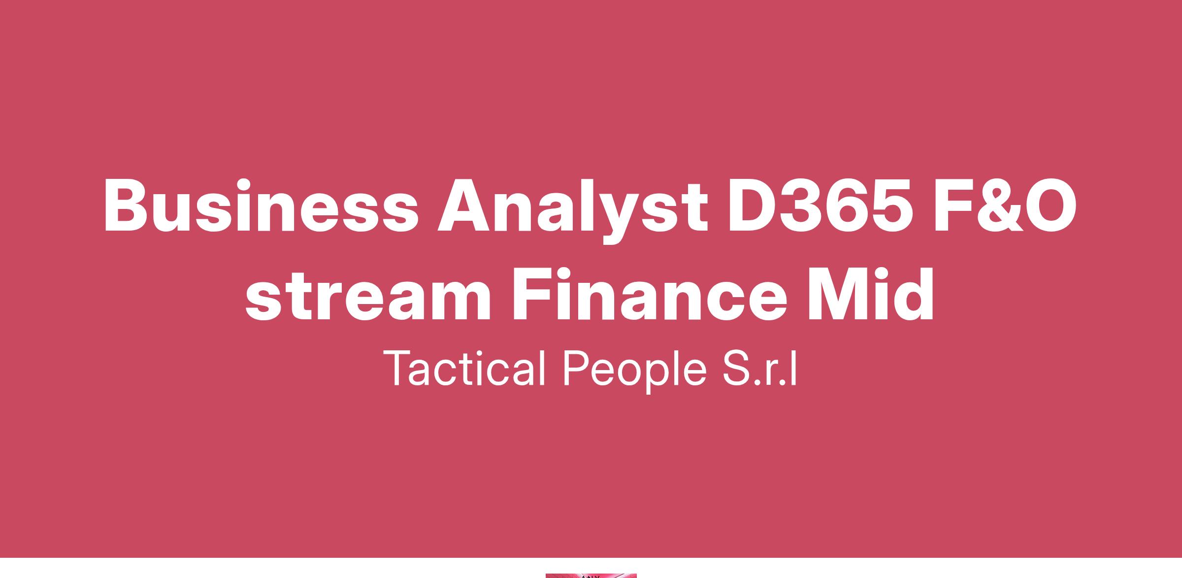 Unisciti a TACTICAL PEOPLE: Innovazione, Persone e Crescita nel Cuore della Digital Transformation Da oltre 20 anni, TACTICAL PEOPLE si posiziona come leader nel mercato ICT, guidando con passione e competenza i nostri clienti di medie e grandi dimensioni attraverso il dinamico percorso della digital transformation. La nostra mission è chiara: non solo abbracciare il cambiamento tecnologico, ma guidarlo, creando soluzioni all'avanguardia che plasmino il futuro digitale. In TACTICAL PEOPLE, crediamo fortemente nel mettere le persone al centro di ogni nostra iniziativa. Le persone sono il cuore pulsante della nostra azienda; il loro benessere, la loro crescita e il loro sviluppo sono la nostra priorità. Ci impegniamo a condividere le strategie aziendali con trasparenza e a fornire formazione e supporto a ogni livello, garantendo che ogni membro del team sia equipaggiato per eccellere e innovare. Stiamo cercando individui che condividano la nostra visione, che siano guidati dalla passione per la tecnologia e che desiderino essere protagonisti nella costruzione di un futuro digitale più luminoso. Se sei pronto a far parte di una squadra che valorizza il talento, incoraggia la crescita personale e professionale e lavora in prima linea nel settore della digital transformation, TACTICAL PEOPLE è il posto giusto per te. Posizione Aperta: Business Analyst D365 F&O stream Finance Middle Sede: Remoto Descrizione del Ruolo: Il candidato ideale minimo 4 anni di esperienza su Dynamics 365 F&O in ambito Finance. Cosa offriamo: Inserimento immediato in una Tech Community giovane e dinamica. TACTICAL LEARNING HUB, con corsi di aggiornamento e formazione. Il presente annuncio è rivolto ad entrambi i sessi, ai sensi delle leggi 903/77 e 125/91, e a persone di tutte le età e tutte le nazionalità, ai sensi dei decreti legislativi 215/03 e 216/03. I curricula dovranno pervenire completi di dicitura che autorizza il trattamento dei propri dati: “Si autorizza al trattamento dei dati personali ai sensi del D. Lgs. 196/2003.