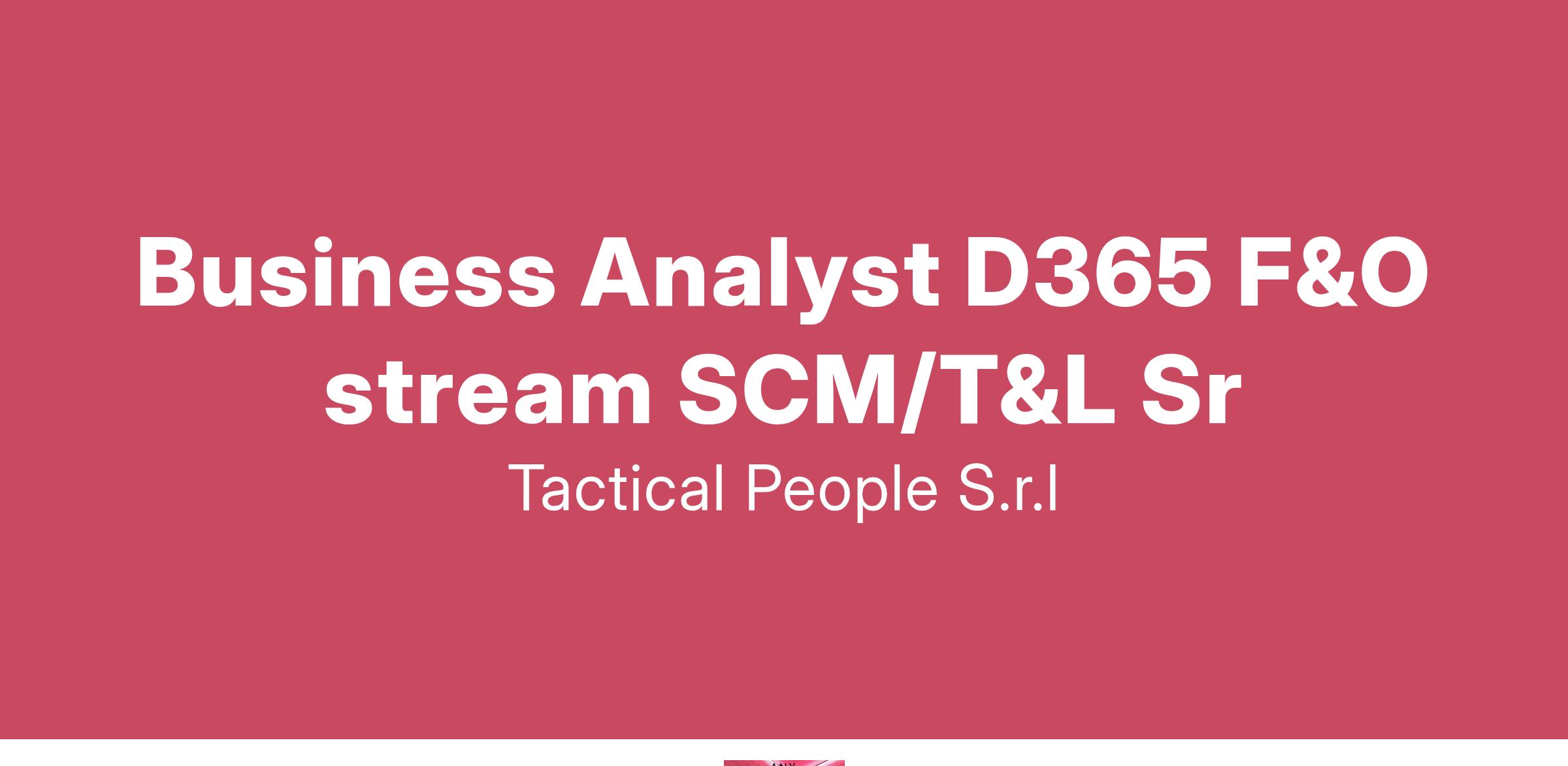 Unisciti a TACTICAL PEOPLE: Innovazione, Persone e Crescita nel Cuore della Digital Transformation Da oltre 20 anni, TACTICAL PEOPLE si posiziona come leader nel mercato ICT, guidando con passione e competenza i nostri clienti di medie e grandi dimensioni attraverso il dinamico percorso della digital transformation. La nostra mission è chiara: non solo abbracciare il cambiamento tecnologico, ma guidarlo, creando soluzioni all'avanguardia che plasmino il futuro digitale. In TACTICAL PEOPLE, crediamo fortemente nel mettere le persone al centro di ogni nostra iniziativa. Le persone sono il cuore pulsante della nostra azienda; il loro benessere, la loro crescita e il loro sviluppo sono la nostra priorità. Ci impegniamo a condividere le strategie aziendali con trasparenza e a fornire formazione e supporto a ogni livello, garantendo che ogni membro del team sia equipaggiato per eccellere e innovare. Stiamo cercando individui che condividano la nostra visione, che siano guidati dalla passione per la tecnologia e che desiderino essere protagonisti nella costruzione di un futuro digitale più luminoso. Se sei pronto a far parte di una squadra che valorizza il talento, incoraggia la crescita personale e professionale e lavora in prima linea nel settore della digital transformation, TACTICAL PEOPLE è il posto giusto per te. Posizione Aperta: Business Analyst D365 F&O stream SCM/T&L Senior Sede: Remoto Descrizione del ruolo: il candidato ideale deve avere una solida padronanza delle funzionalità di Logistica, Vendite e Acquisti. Cosa offriamo: Inserimento immediato in una Tech Community giovane e dinamica. TACTICAL LEARNING HUB, con corsi di aggiornamento e formazione. Il presente annuncio è rivolto ad entrambi i sessi, ai sensi delle leggi 903/77 e 125/91, e a persone di tutte le età e tutte le nazionalità, ai sensi dei decreti legislativi 215/03 e 216/03. I curricula dovranno pervenire completi di dicitura che autorizza il trattamento dei propri dati: “Si autorizza al trattamento dei dati personali ai sensi del D. Lgs. 196/2003.