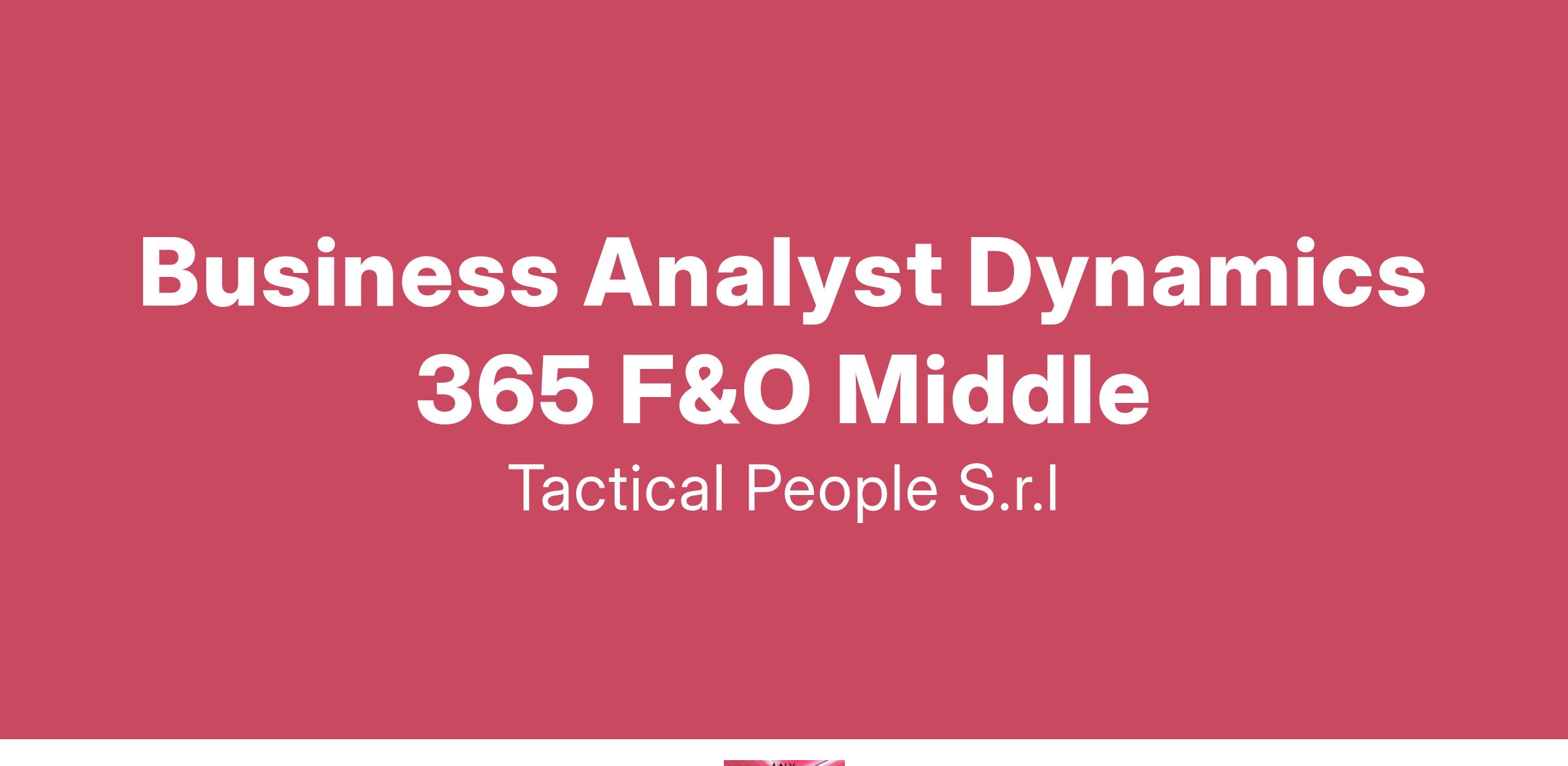 Unisciti a TACTICAL PEOPLE: Innovazione, Persone e Crescita nel Cuore della Digital Transformation Da oltre 20 anni, TACTICAL PEOPLE si posiziona come leader nel mercato ICT, guidando con passione e competenza i nostri clienti di medie e grandi dimensioni attraverso il dinamico percorso della digital transformation. La nostra mission è chiara: non solo abbracciare il cambiamento tecnologico, ma guidarlo, creando soluzioni all'avanguardia che plasmino il futuro digitale. In TACTICAL PEOPLE, crediamo fortemente nel mettere le persone al centro di ogni nostra iniziativa. Le persone sono il cuore pulsante della nostra azienda; il loro benessere, la loro crescita e il loro sviluppo sono la nostra priorità. Ci impegniamo a condividere le strategie aziendali con trasparenza e a fornire formazione e supporto a ogni livello, garantendo che ogni membro del team sia equipaggiato per eccellere e innovare. Stiamo cercando individui che condividano la nostra visione, che siano guidati dalla passione per la tecnologia e che desiderino essere protagonisti nella costruzione di un futuro digitale più luminoso. Se sei pronto a far parte di una squadra che valorizza il talento, incoraggia la crescita personale e professionale e lavora in prima linea nel settore della digital transformation, TACTICAL PEOPLE è il posto giusto per te. Posizione Aperta: Business Analyst Dynamics 365 F&O in area Supply Chain Middle Sede: Remoto Descrizione del ruolo: il candidato ideale deve avere una solida padronanza delle funzionalità di Logistica, Vendite e Acquisti. Cosa offriamo: Inserimento immediato in una Tech Community giovane e dinamica. TACTICAL LEARNING HUB, con corsi di aggiornamento e formazione. Il presente annuncio è rivolto ad entrambi i sessi, ai sensi delle leggi 903/77 e 125/91, e a persone di tutte le età e tutte le nazionalità, ai sensi dei decreti legislativi 215/03 e 216/03. I curricula dovranno pervenire completi di dicitura che autorizza il trattamento dei propri dati: “Si autorizza al trattamento dei dati personali ai sensi del D. Lgs. 196/2003.