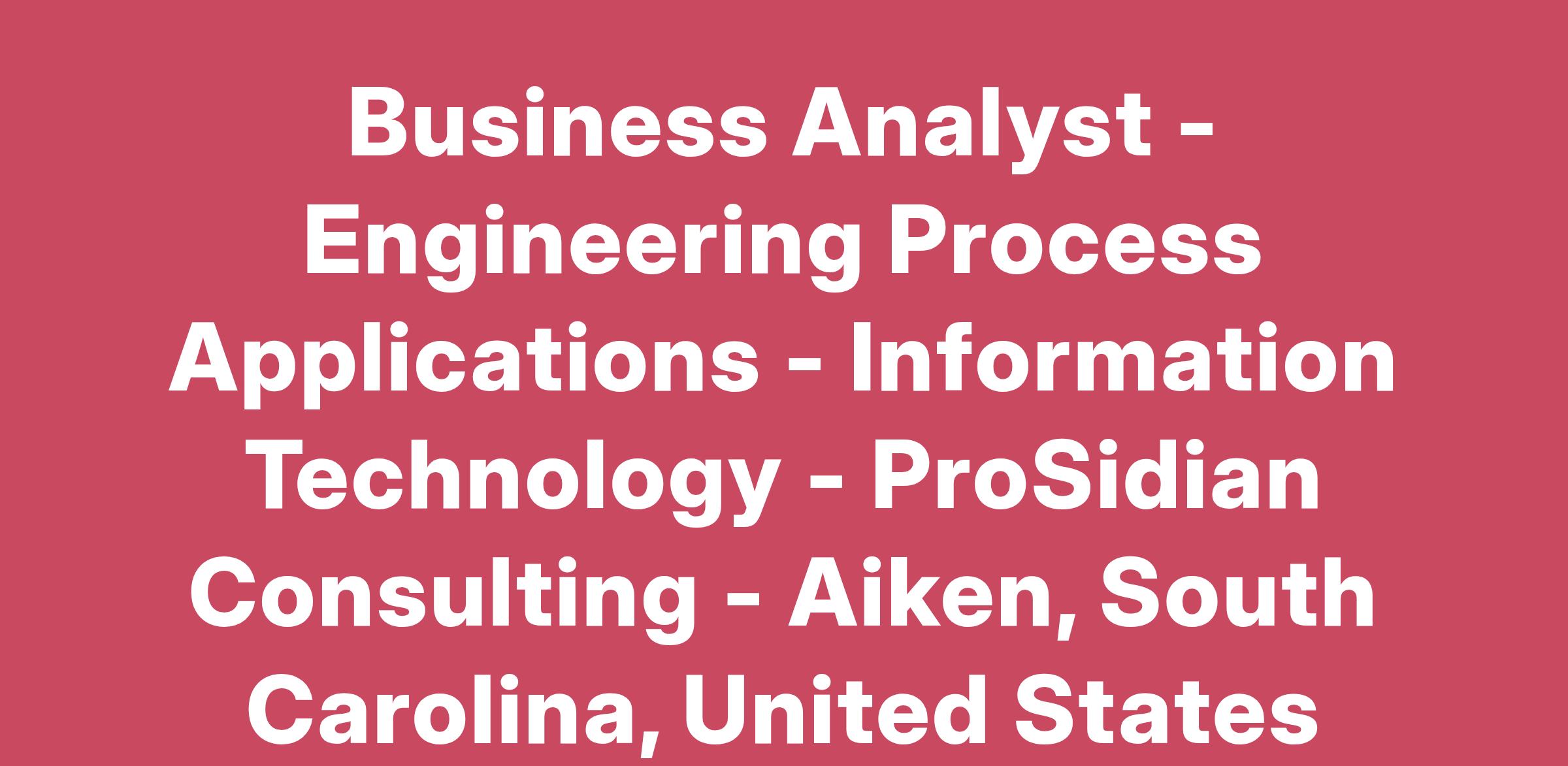 ProSidian Seeks a Business Analyst - Engineering Process Applications - Information Technology (Time and Materials | Non-Exempt) to support an engagement for a liquid waste contractor (Savannah River Remediation [SRR]) at the Savannah River Site in Aiken, SC, which is owned by the U.S. Department of Energy.