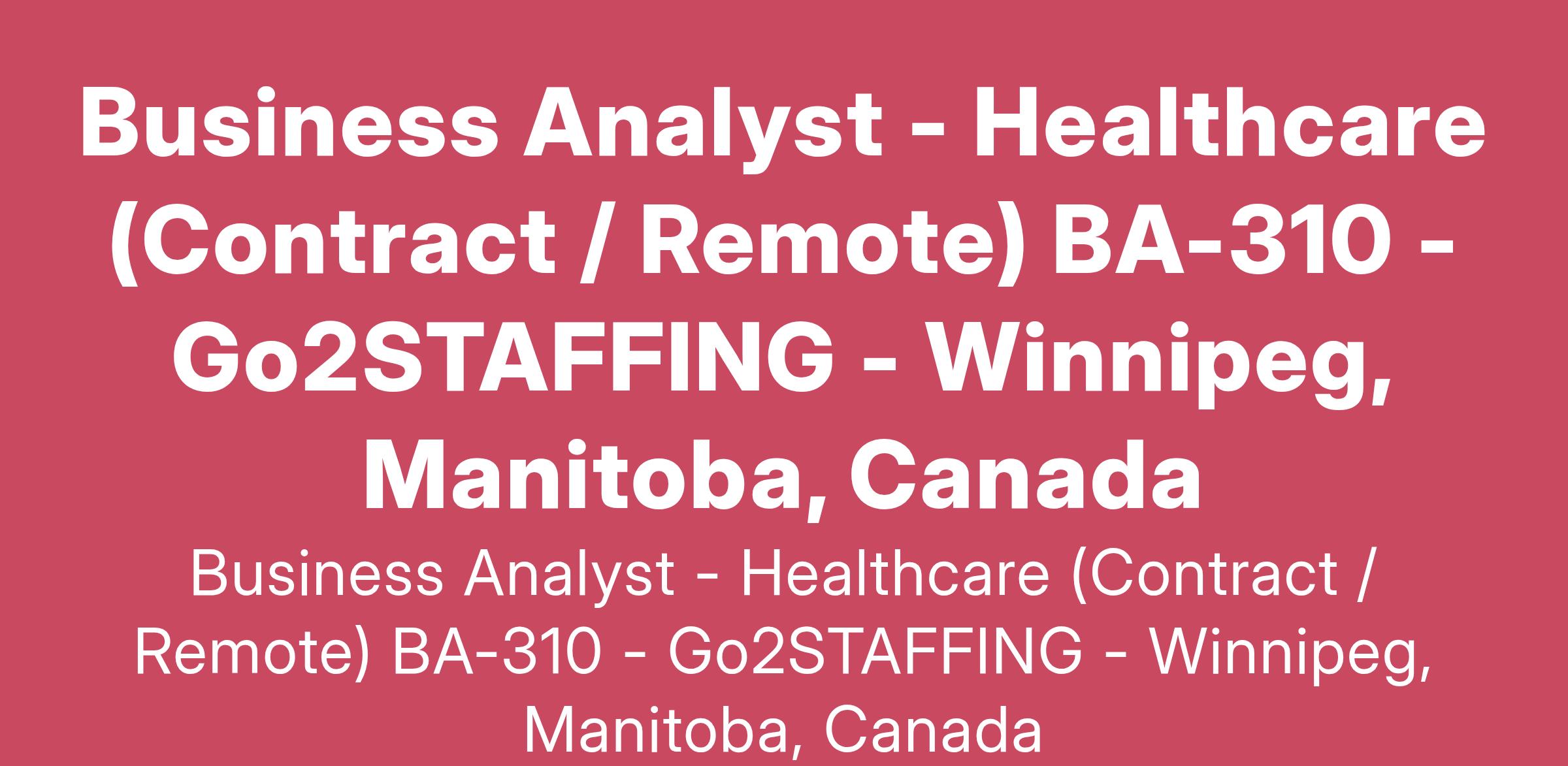 Business Analyst -Healthcare (Contract / Remote) Duration: 1yr contract to start, with high probability of extension Location: Remote Canada The Opportunity: Our client vision is to eliminate the diagnostic and surgical backlog resulting from the COVID-19 pandemic. The project includes individuals with expertise related to surgical and diagnostic services, governance, analysis and evaluation, and project management. The task force is comprised of a steering committee and a project team. The steering committee is comprised of citizens, patients, indigenous representatives, front-line care providers and provincial clinical specialty leaders. The candidate will address waitlists for diagnostic and surgical procedures, as well as related services affected by the COVID-19 pandemic. This will include identifying the priority needs of patients and implementing local and out-of-province services as a temporary initiative to offer the safest and most timely health-care solutions available. · Creating a centralized information