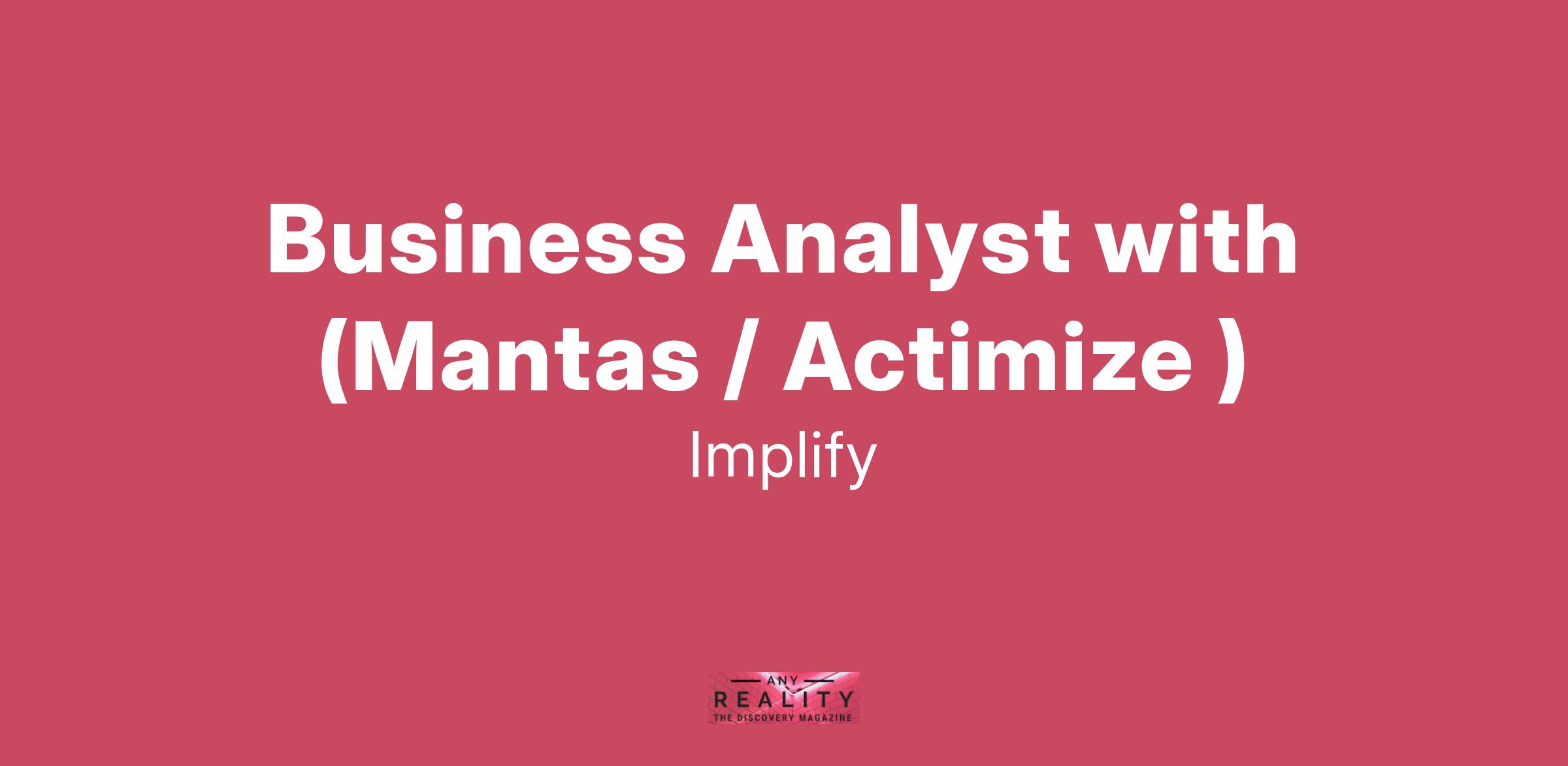 Job Title: Business Analyst with (Mantas)