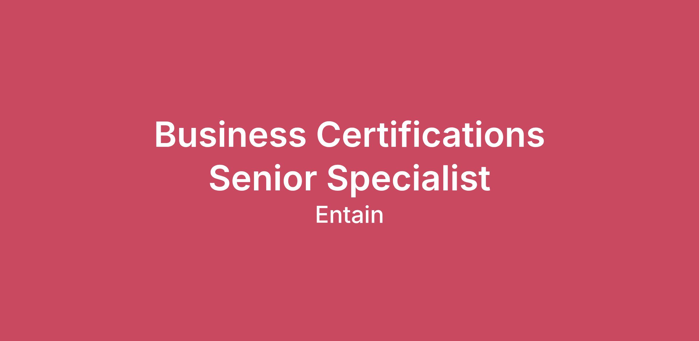 Business Certifications Senior Specialist