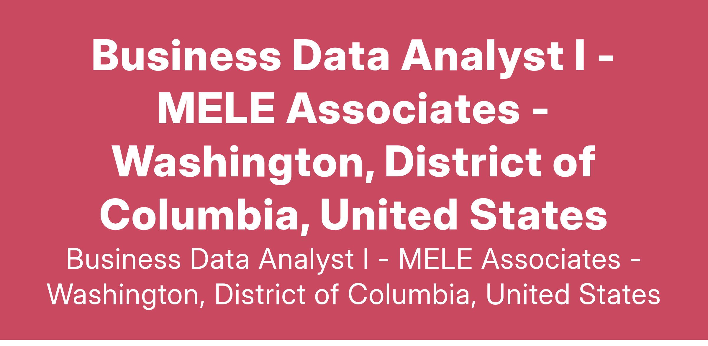 MELE Associates, Inc. is seeking to add an experienced Business Data Analyst I team member to support the Department of Energy (DOE) State and Community Energy Programs (SCEP). The Business Data Analyst I position is located at the Department of Energy Forrestal Building, Washington, DC.