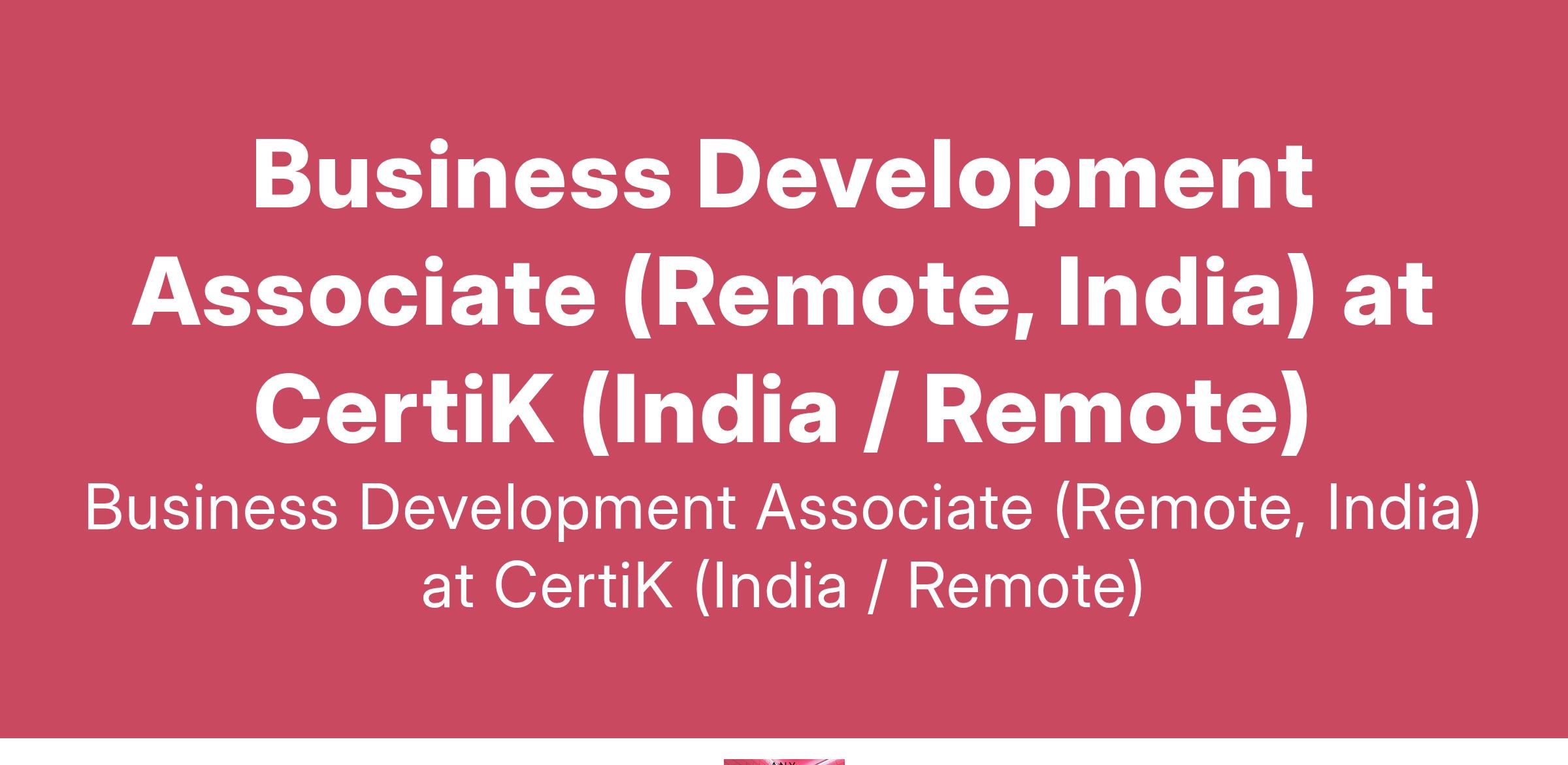 Business Development Associate (Remote, India) at CertiK (India / Remote)