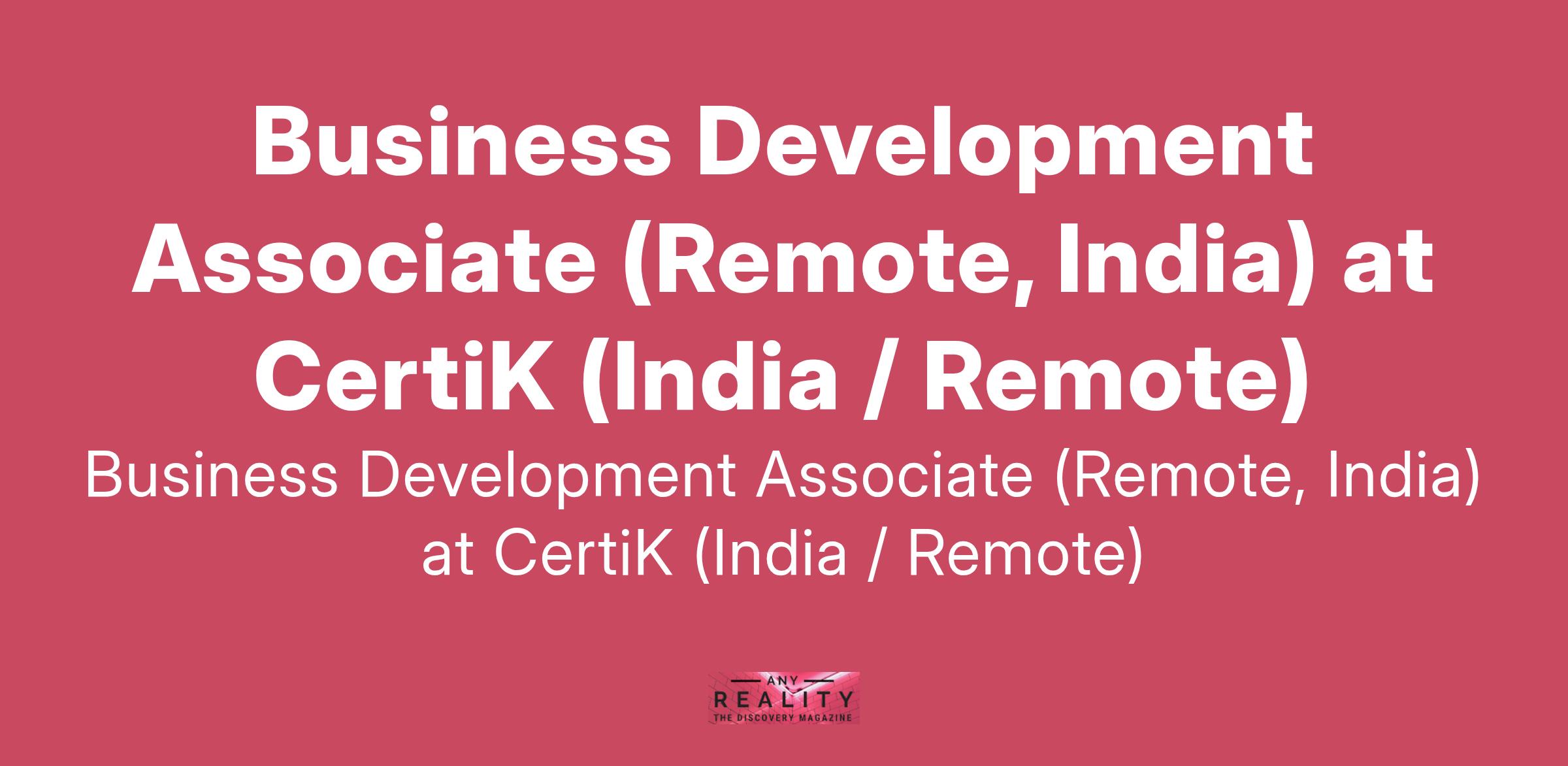 Business Development Associate (Remote, India) at CertiK (India / Remote)