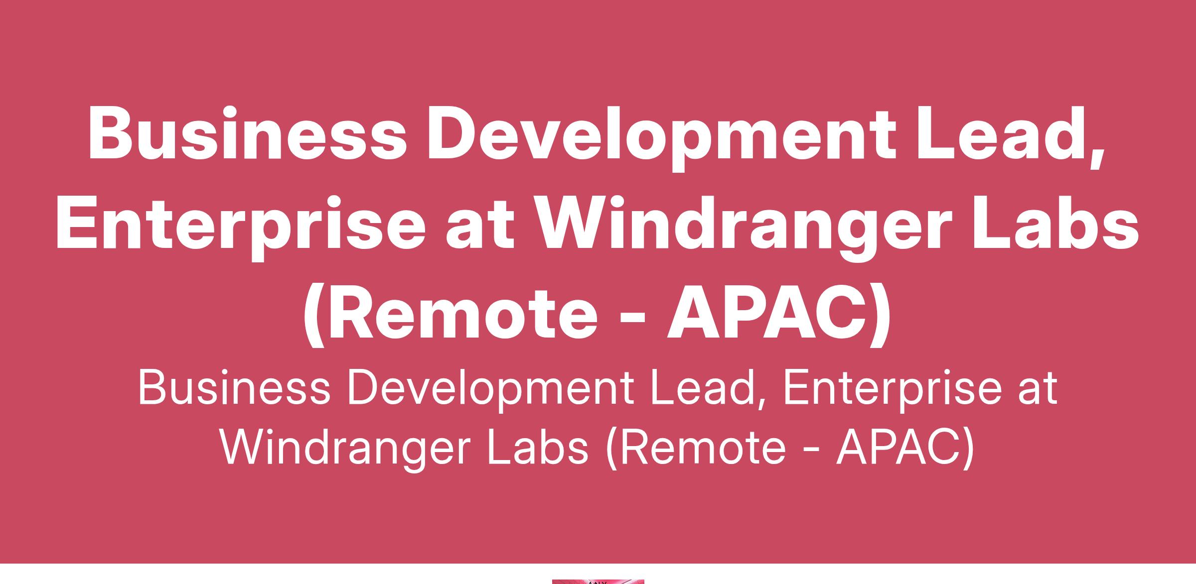 Business Development Lead, Enterprise at Windranger Labs (Remote - APAC)