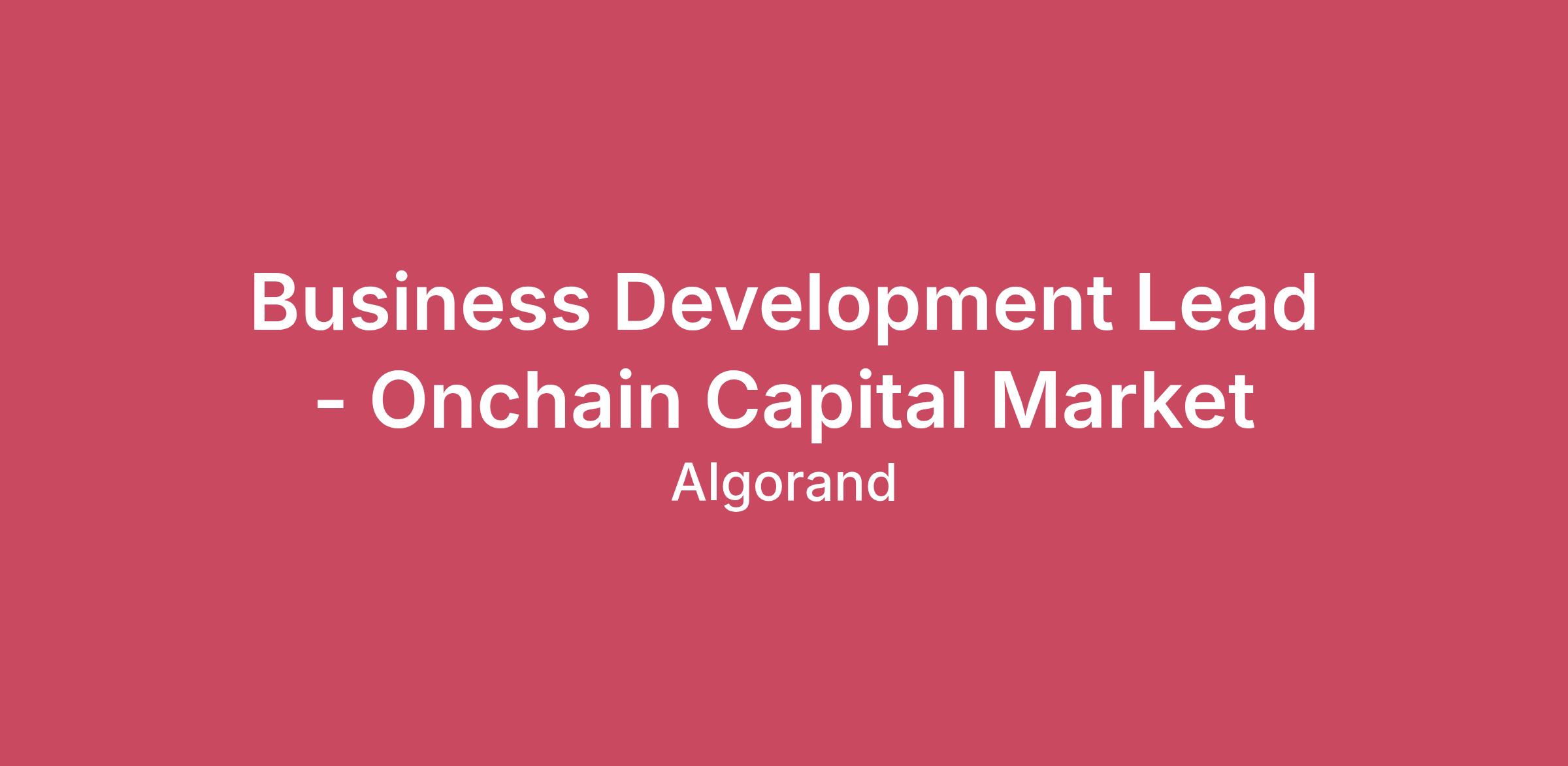We are seeking a Business Development Lead to drive Algorand’s tokenization strategy across global financial markets. This person will be responsible for securing deep partnerships with asset owners, fund managers, and tokenization platforms, while supporting the integration of tokenized assets into Algorand’s DeFi ecosystem.