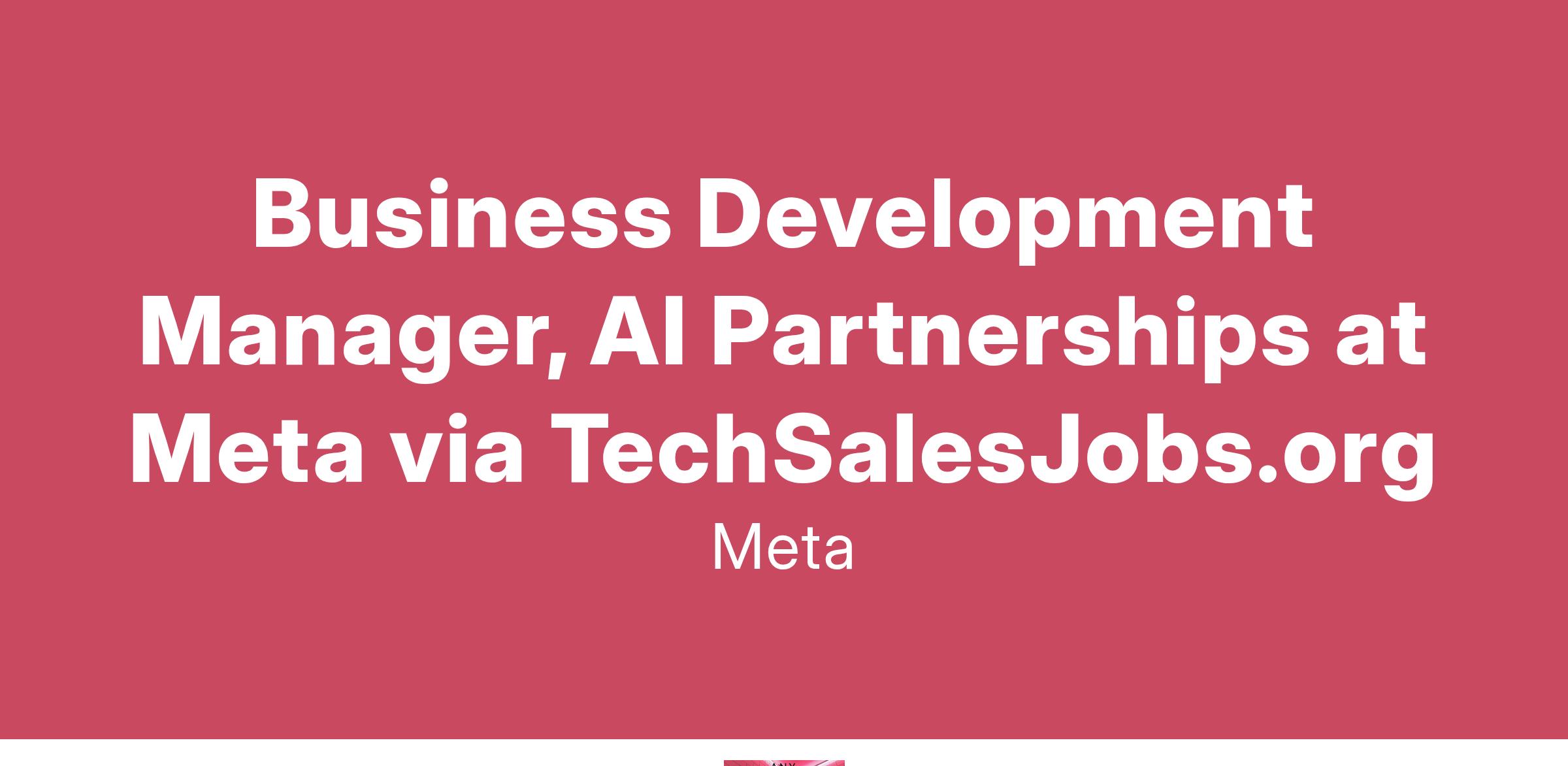 Business Development Manager, AI Partnerships at Meta via TechSalesJobs.org
