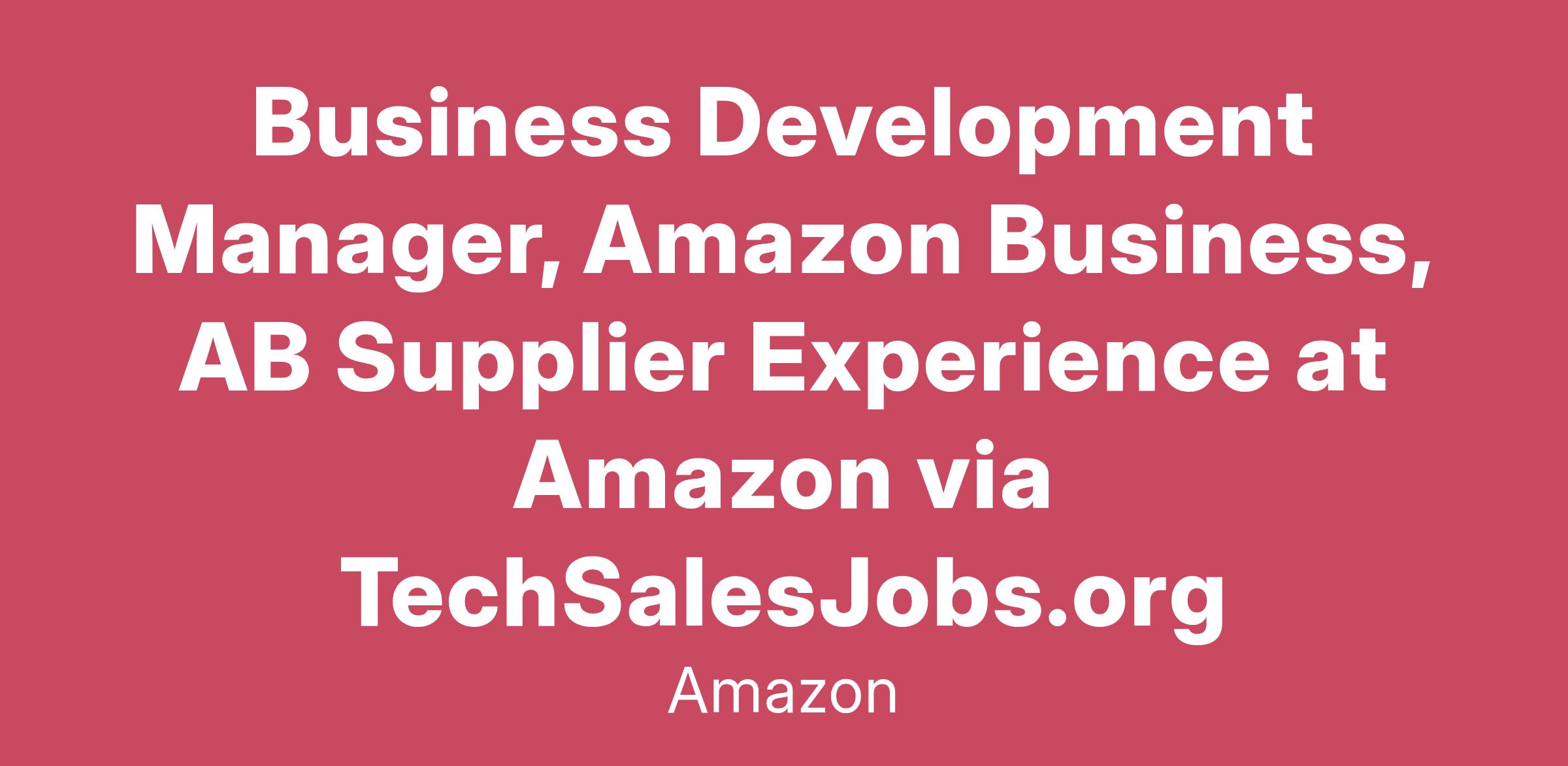 Business Development Manager, Amazon Business, AB Supplier Experience at Amazon via TechSalesJobs.org