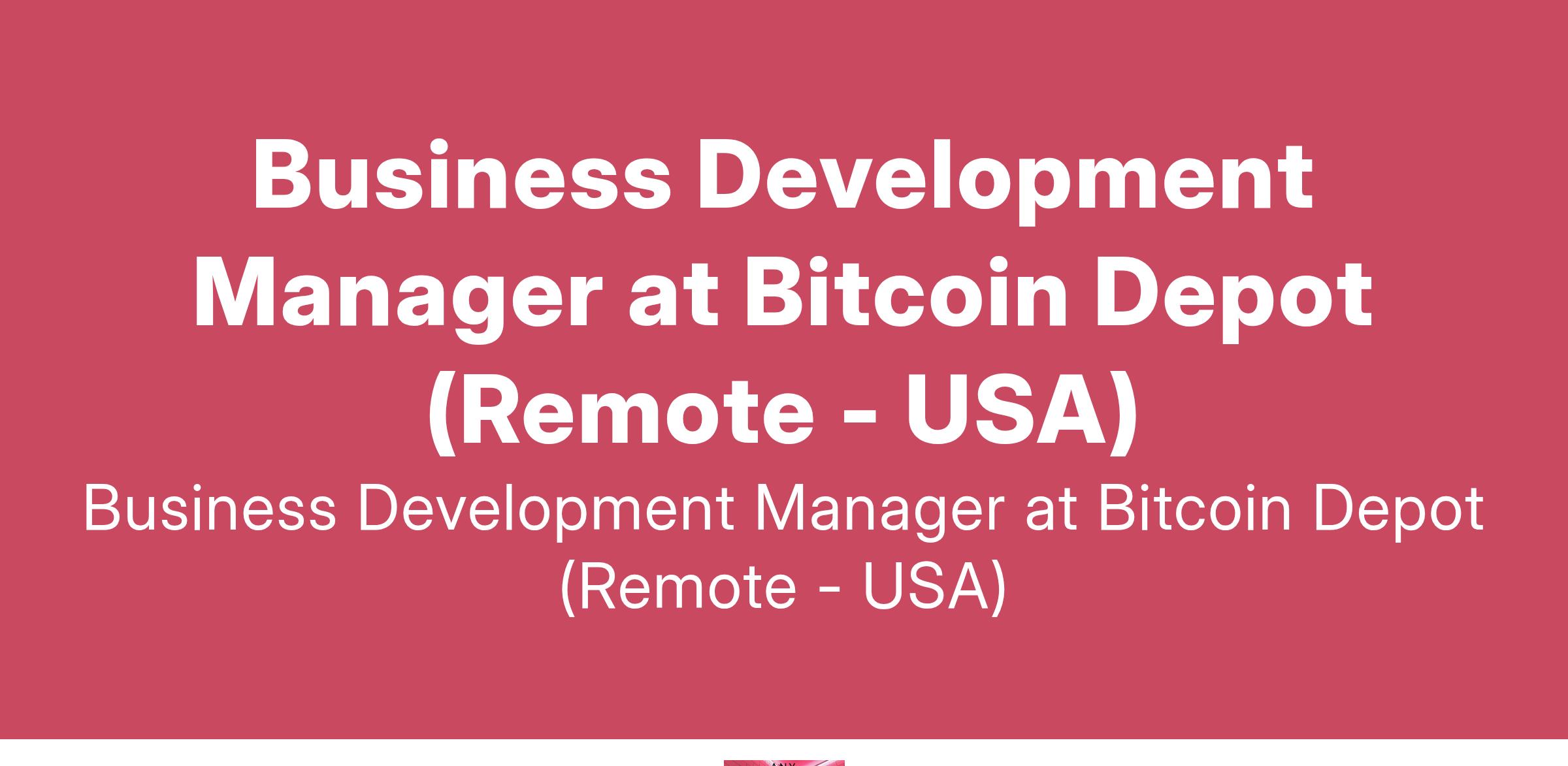 Business Development Manager at Bitcoin Depot (Remote - USA)