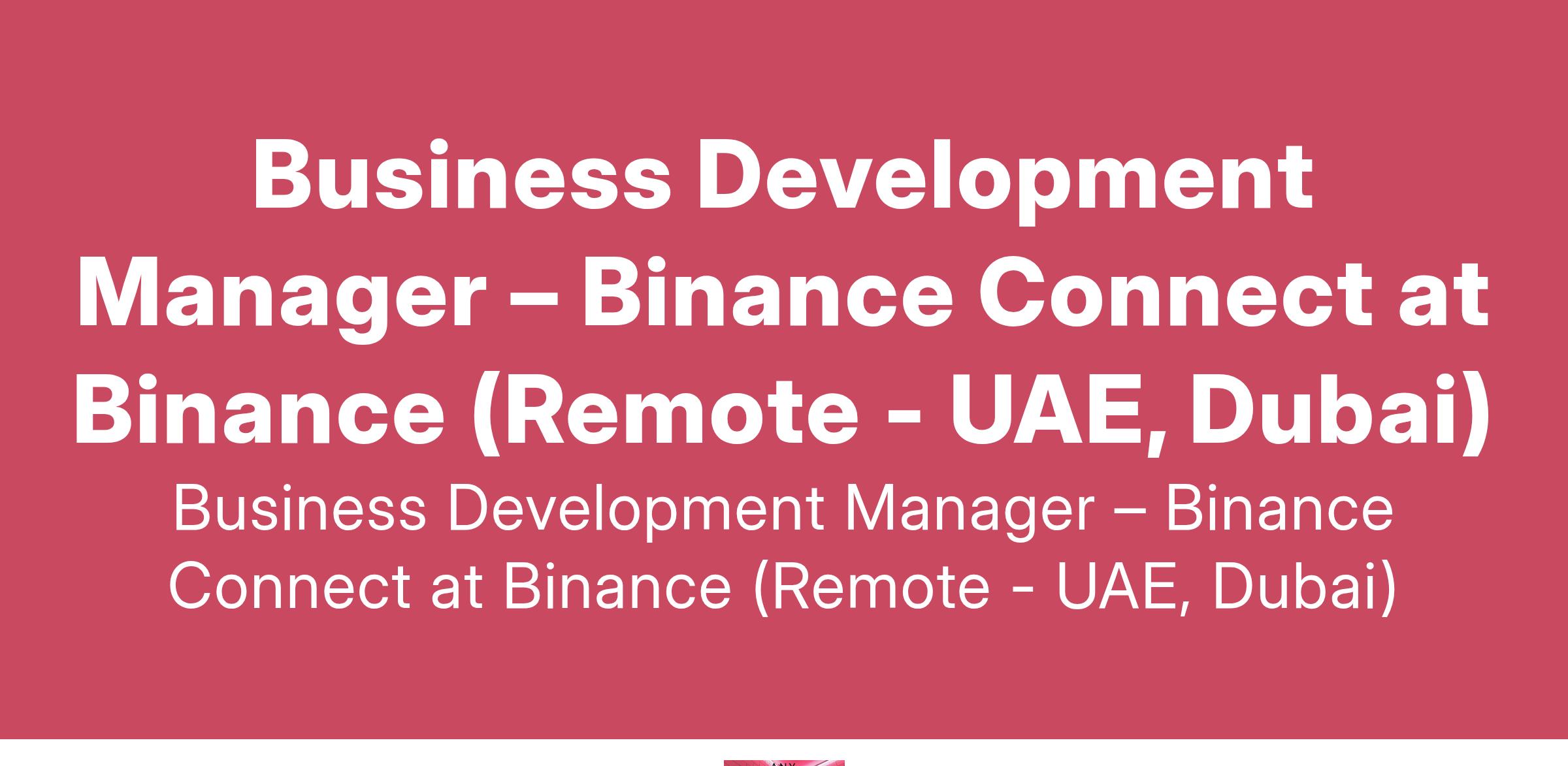 Business Development Manager – Binance Connect at Binance (Remote - UAE, Dubai)