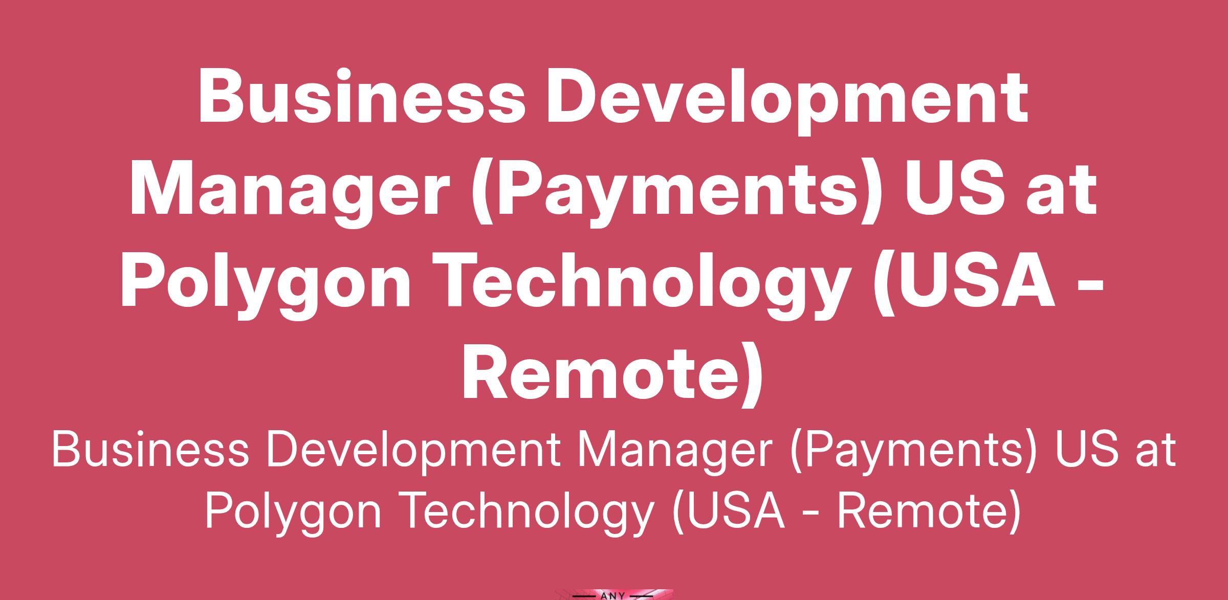 Business Development Manager (Payments) US at Polygon Technology (USA - Remote)