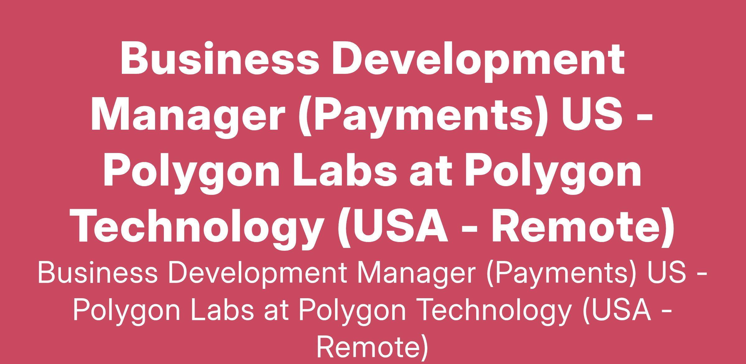 Business Development Manager (Payments) US - Polygon Labs at Polygon Technology (USA - Remote)