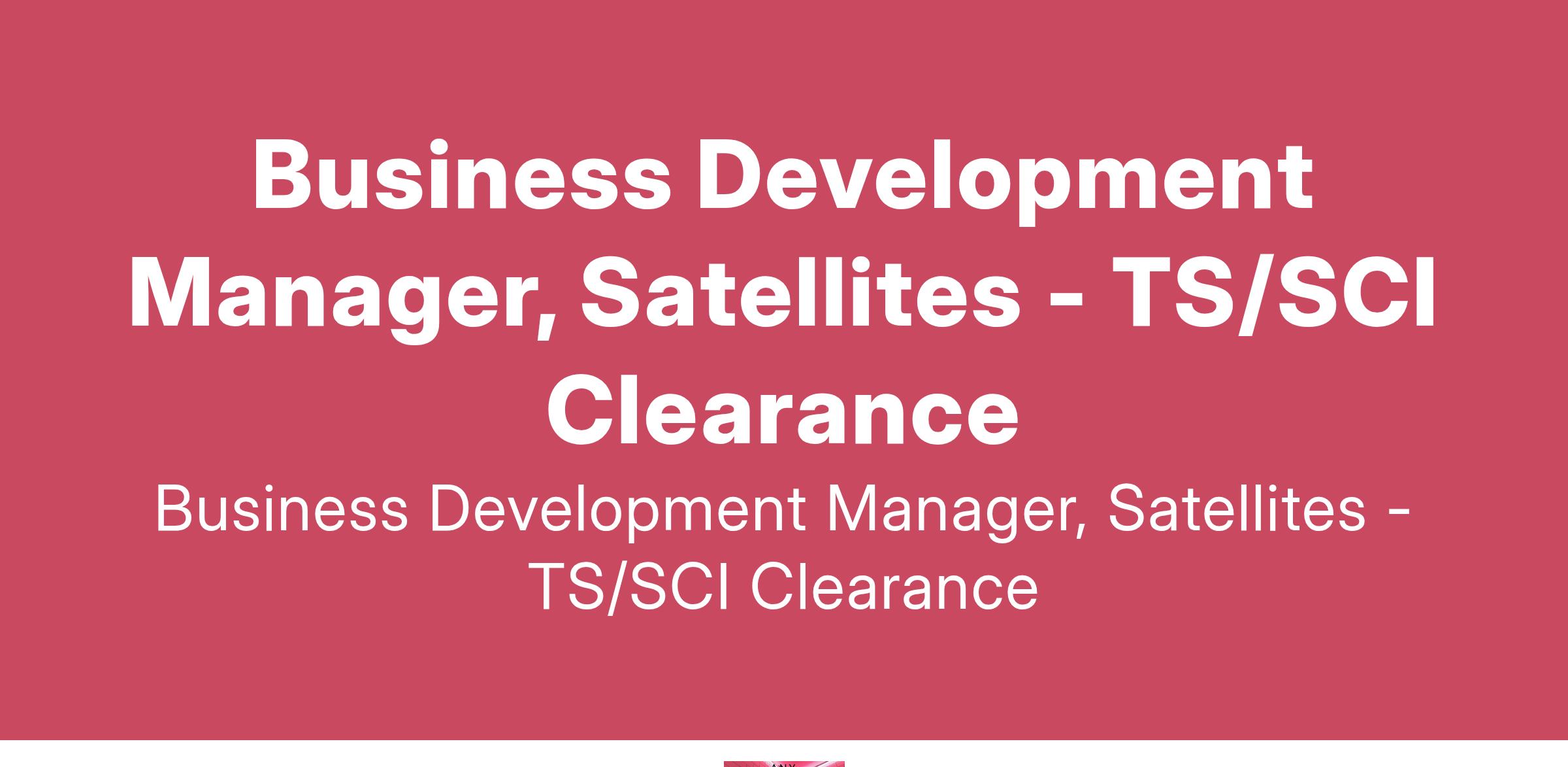 Business Development Manager, Satellites - TS/SCI Clearance