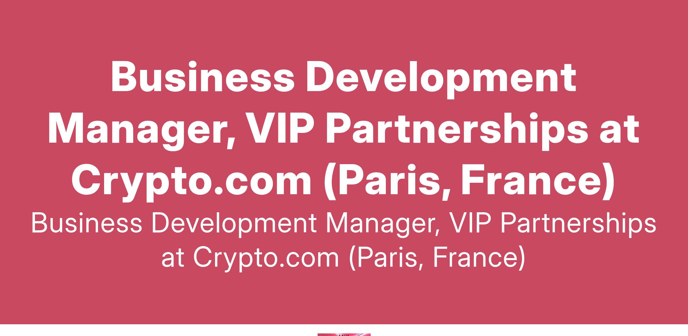 Business Development Manager, VIP Partnerships at Crypto.com (Paris, France)