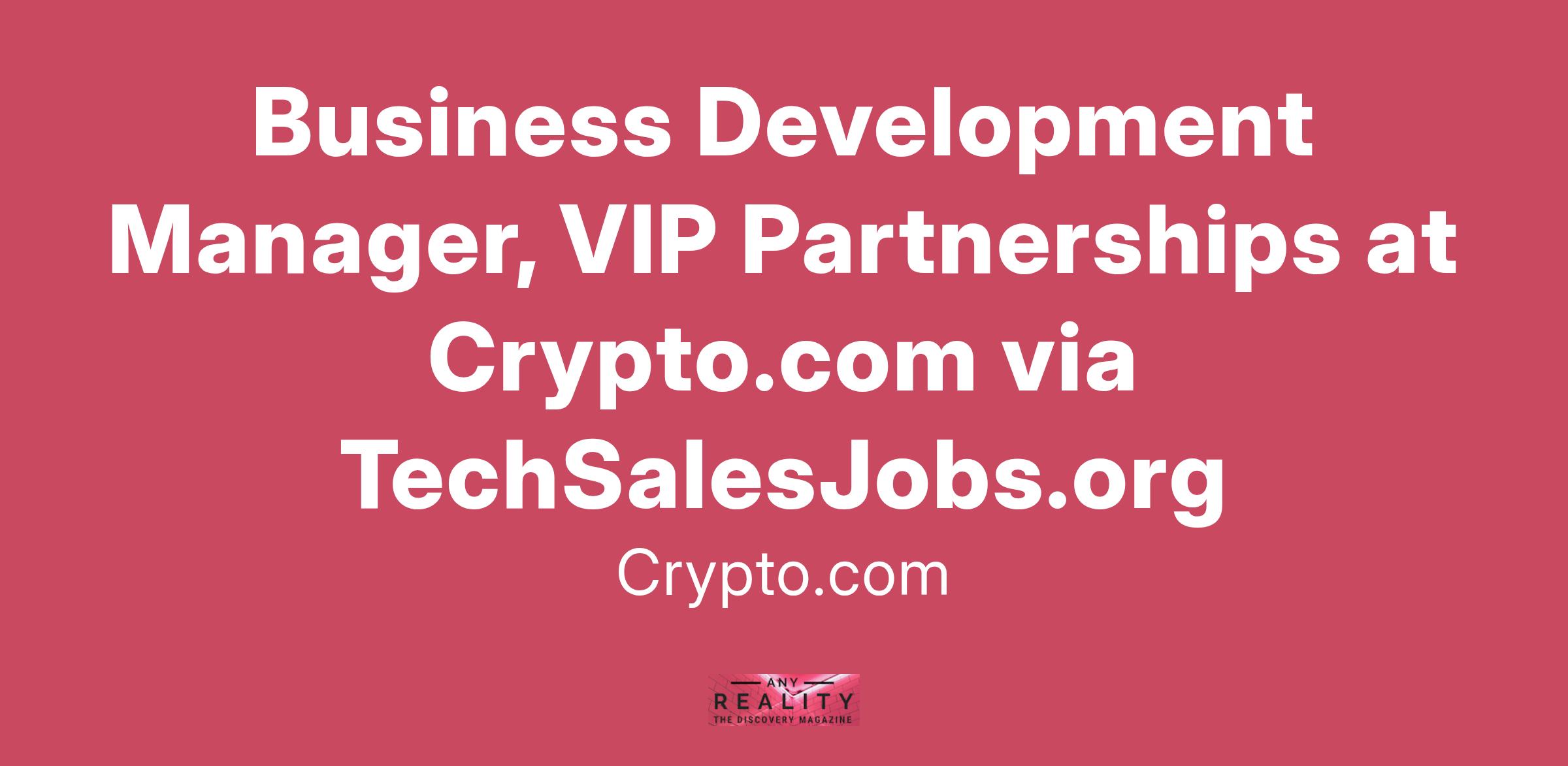 Business Development Manager, VIP Partnerships at Crypto.com via TechSalesJobs.org
