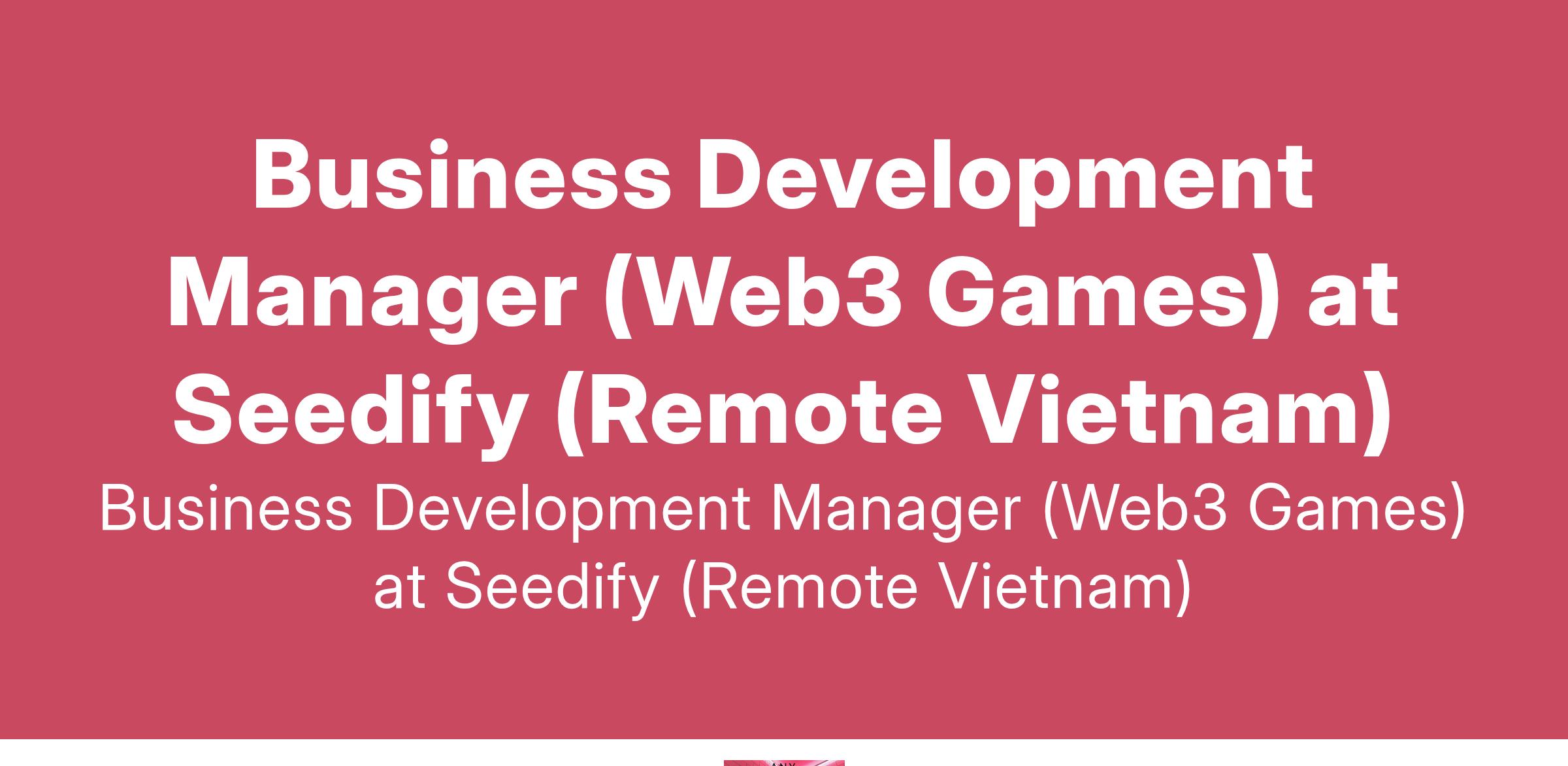 Business Development Manager (Web3 Games) at Seedify (Remote Vietnam)