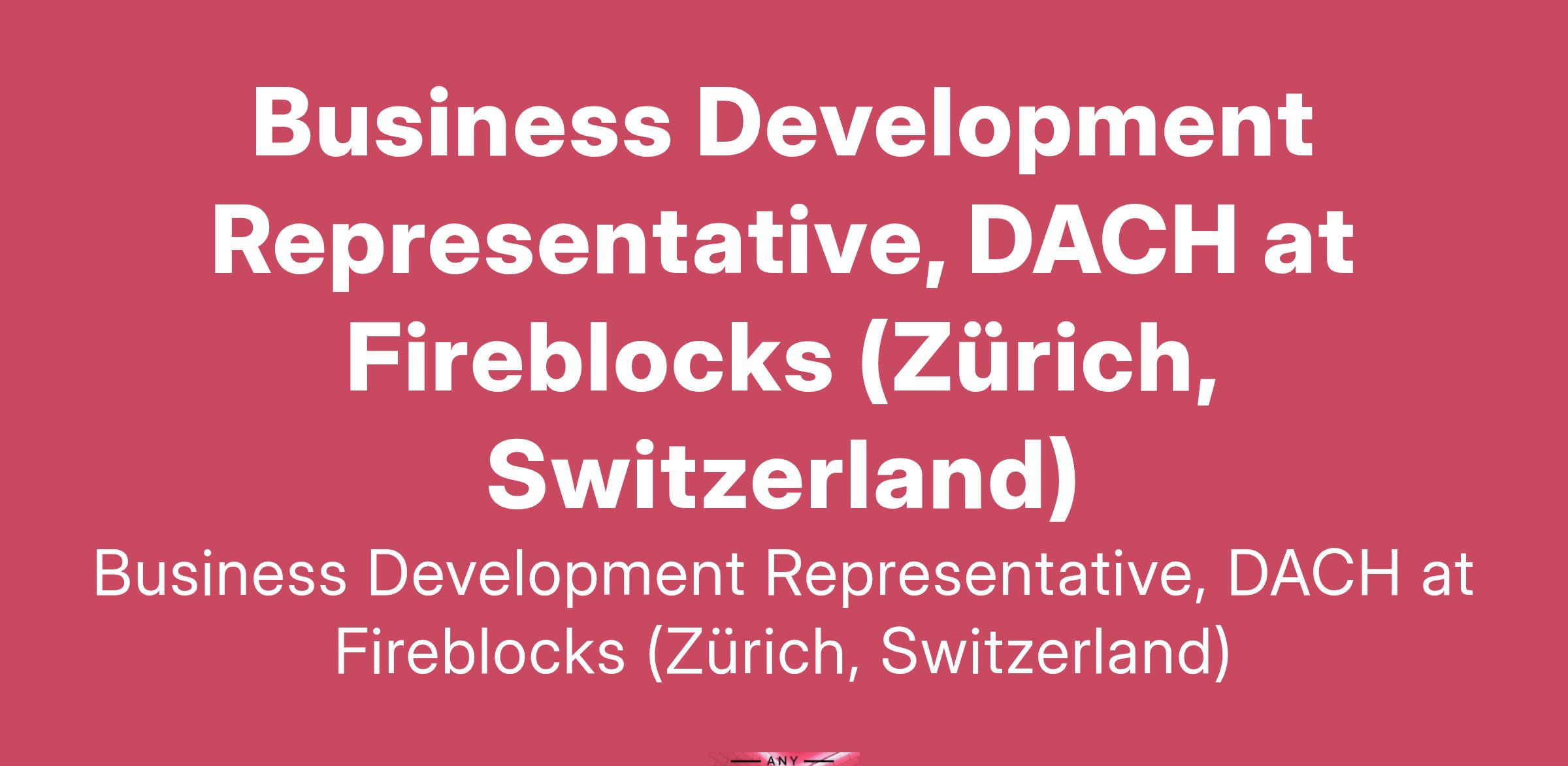 Business Development Representative, DACH at Fireblocks (Zürich, Switzerland)