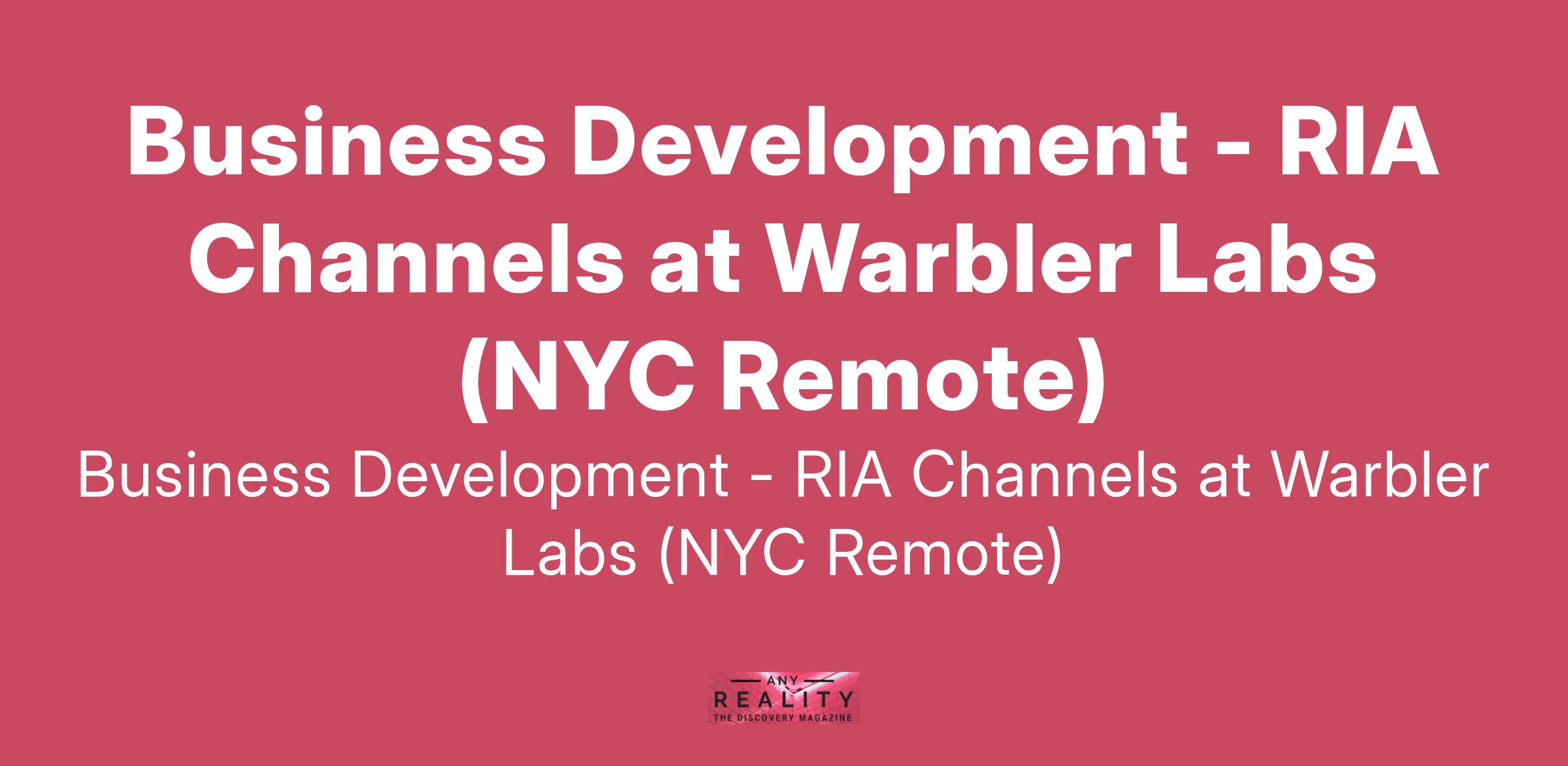 Business Development - RIA Channels at Warbler Labs (NYC Remote)