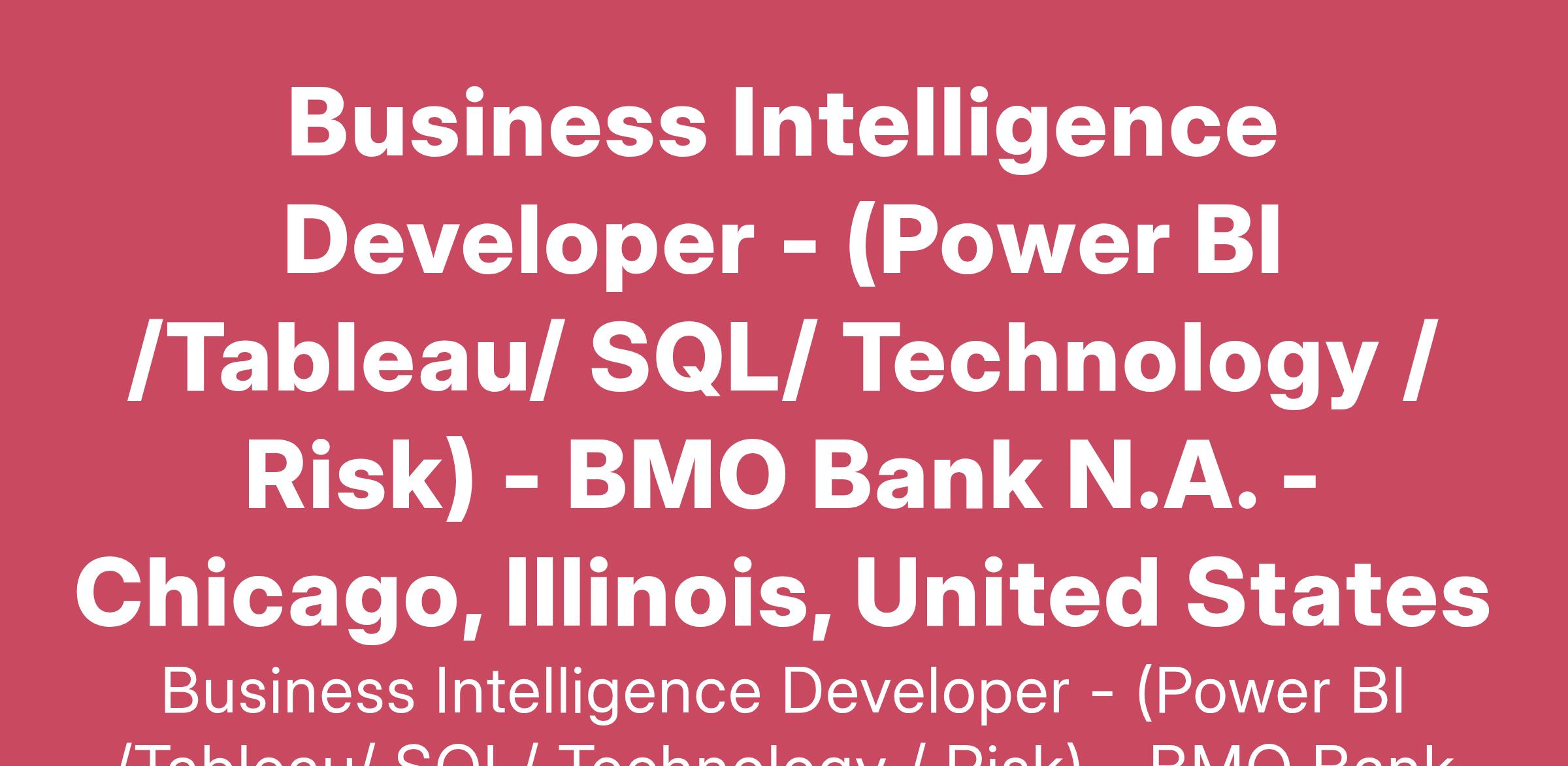 TechnologyJoin our Risk Management team as a BI Developer to design, develop, and deliver high-impact business intelligence solutions. In this role, you'll create data-driven insights through advanced dashboards and analytics, working closely with cross-functional teams to optimize decision-making processes.