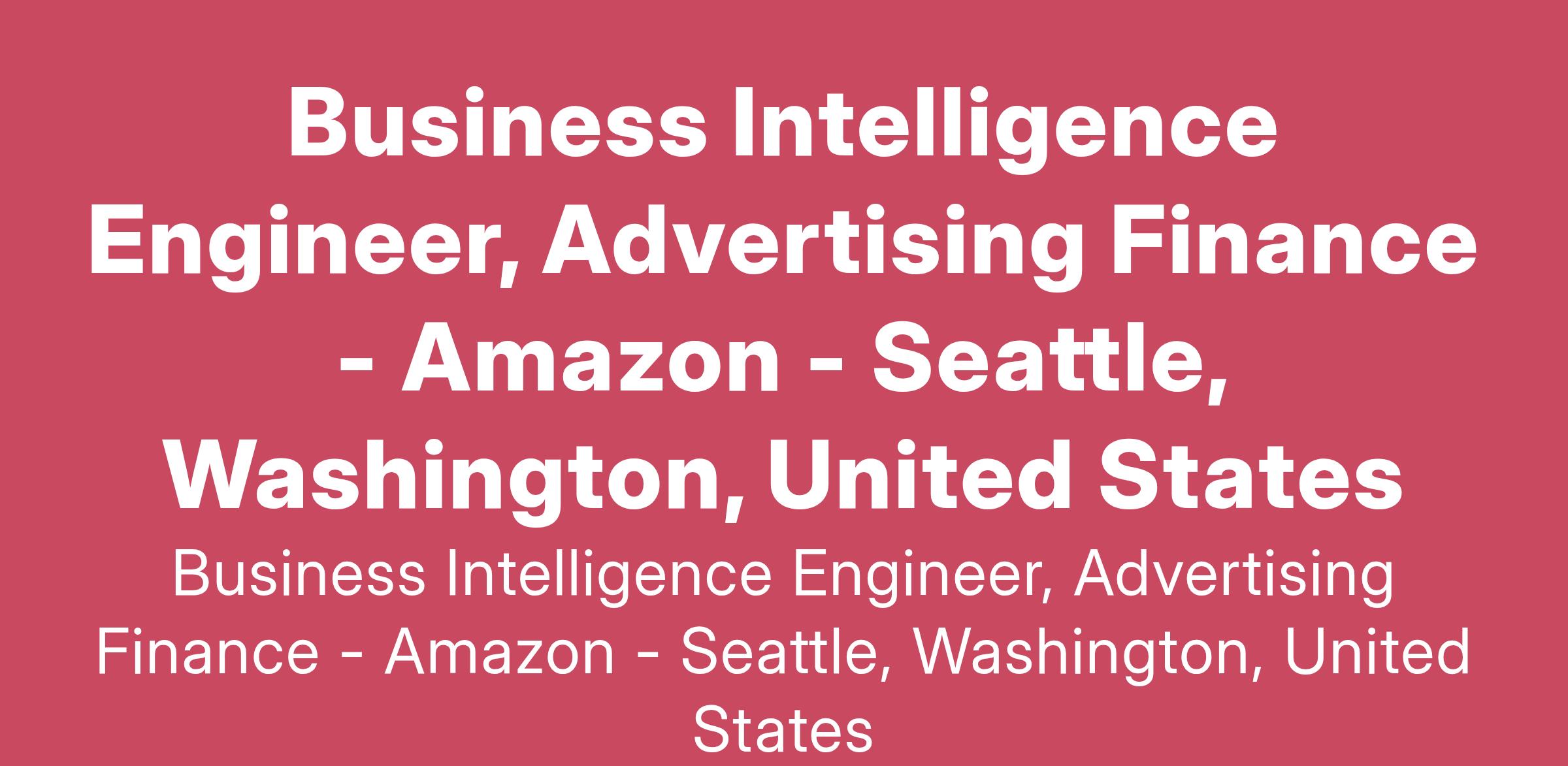 Amazon seeks a Business Intelligence Engineer with strong technical, analytical, and business intelligence skill sets and experience to be a key partner for Amazon’s Advertising business focusing on amazon.com across all ad programs.