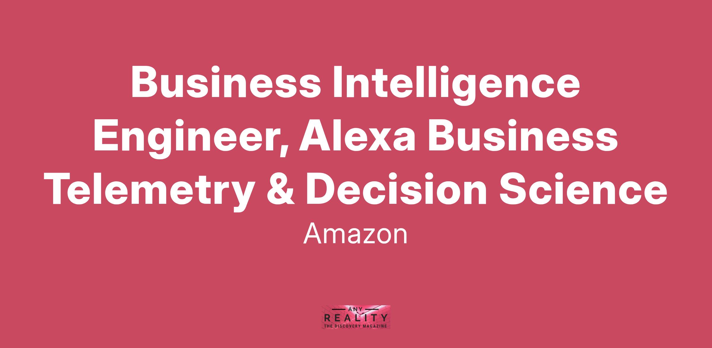 The Alexa Business Telemetry & Decision Science team (B-Tel for short) builds telemetry to report and analyze how customers engage with Alexa and how engagement translates to value for the business. Our products include metrics definition and instrumentation, data products consumed by Alexa BI and analytics teams, and models that predict trends and identify drivers of business outcomes. This BI Engineer will help us understand customer behavior by designing new models to connect separate data, analyzing trends and anomalies for actionable insights, and reporting metrics needed for decision-making.