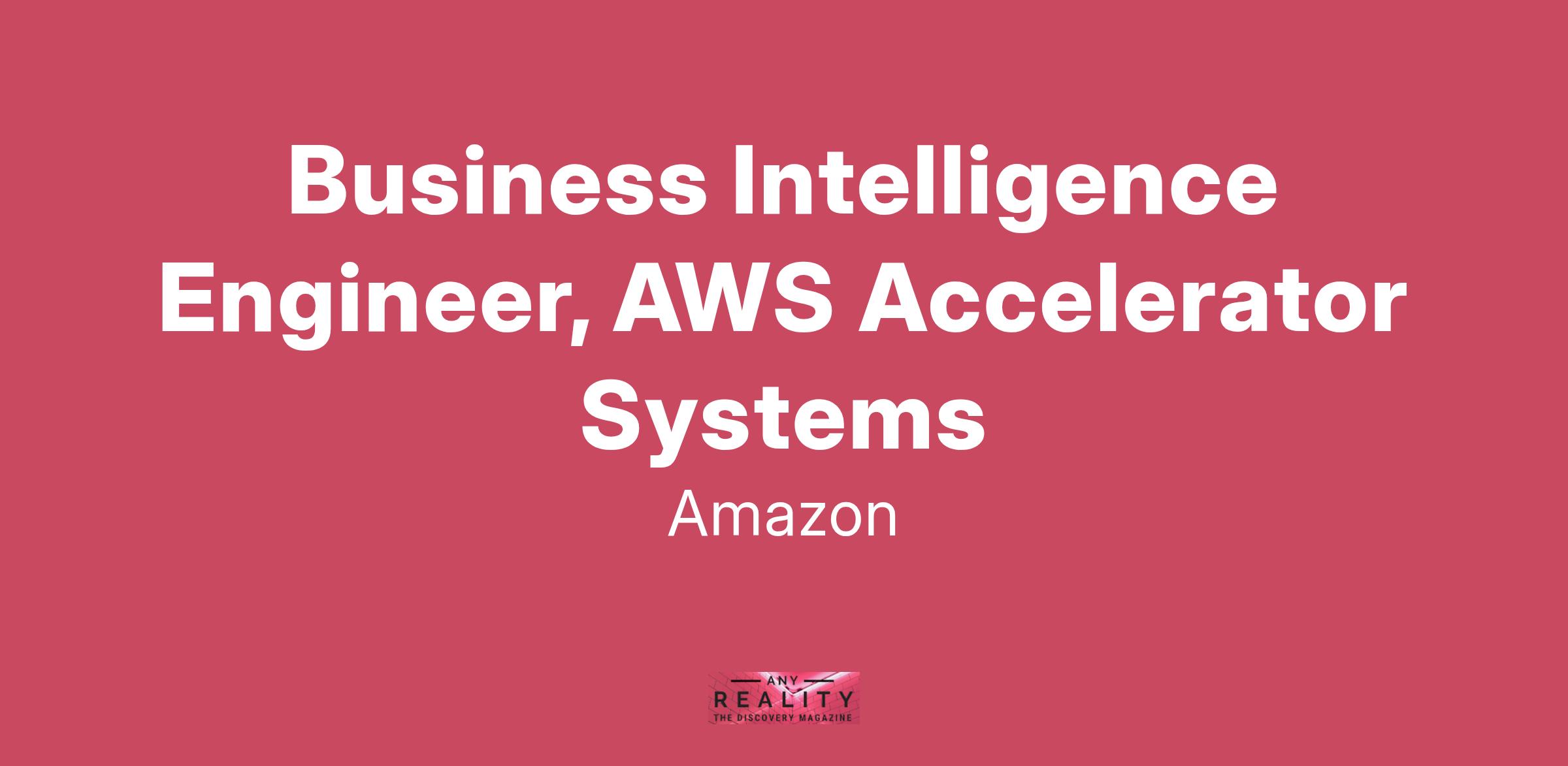 We build the tools that build the cloud, and keep it running! The AWS Accelerator Systems (ACC) team is looking for an experienced Business Intelligence Engineer (BIE) to build innovative insights that influence how work is orchestrated in AWS data centers. Accelerator Systems owns the custom software products that enable safe, secure, and efficient processes for technicians around the world.