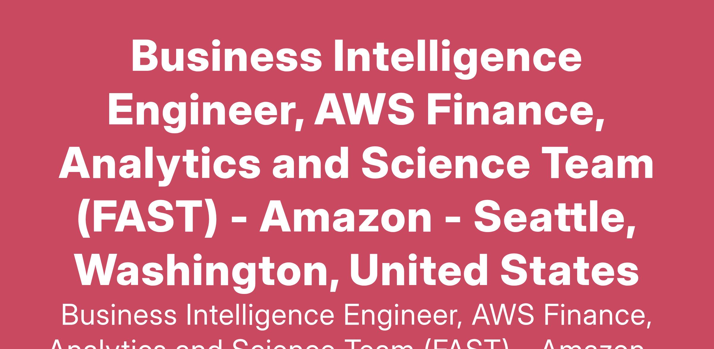 AWS Finance Analytics and Science Team (FAST) is responsible for many of the key functions needed by the AWS global sales organization, including building and operating the data resources that provide the AWS sales organization with insights into all areas of business performance.