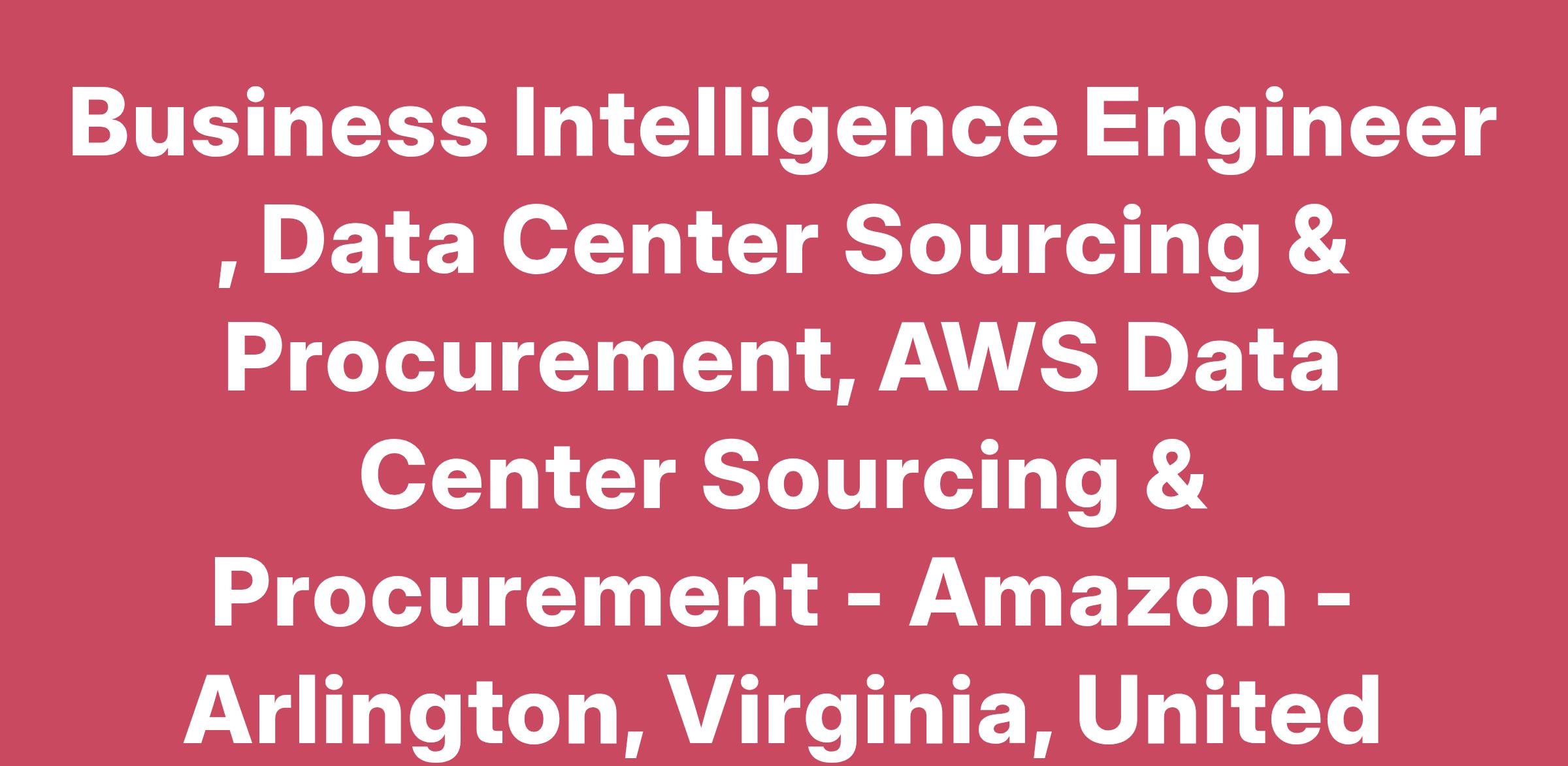 The Data Center Sourcing and Procurement team is looking to hire an experienced Business Intelligence Engineer to join our procurement category management team to support fast growing operations. This role will own data analytics projects from beginning to end, utilizing business intelligence tools to produce dashboard, planning models, and analysis for the different procurement categories verticals. You will work with sourcing teams on vendor tendors, category strategy teams to understand financial trends, and other BI teams across AWS to deliver high quality and robust data visualizations and analyses. You will recognize and adopt best practices in reporting and analysis, including data integrity, data validation, and documentation. Your analysis will contribute deeply to the development of our strategy and drive impact against our business objectives.
